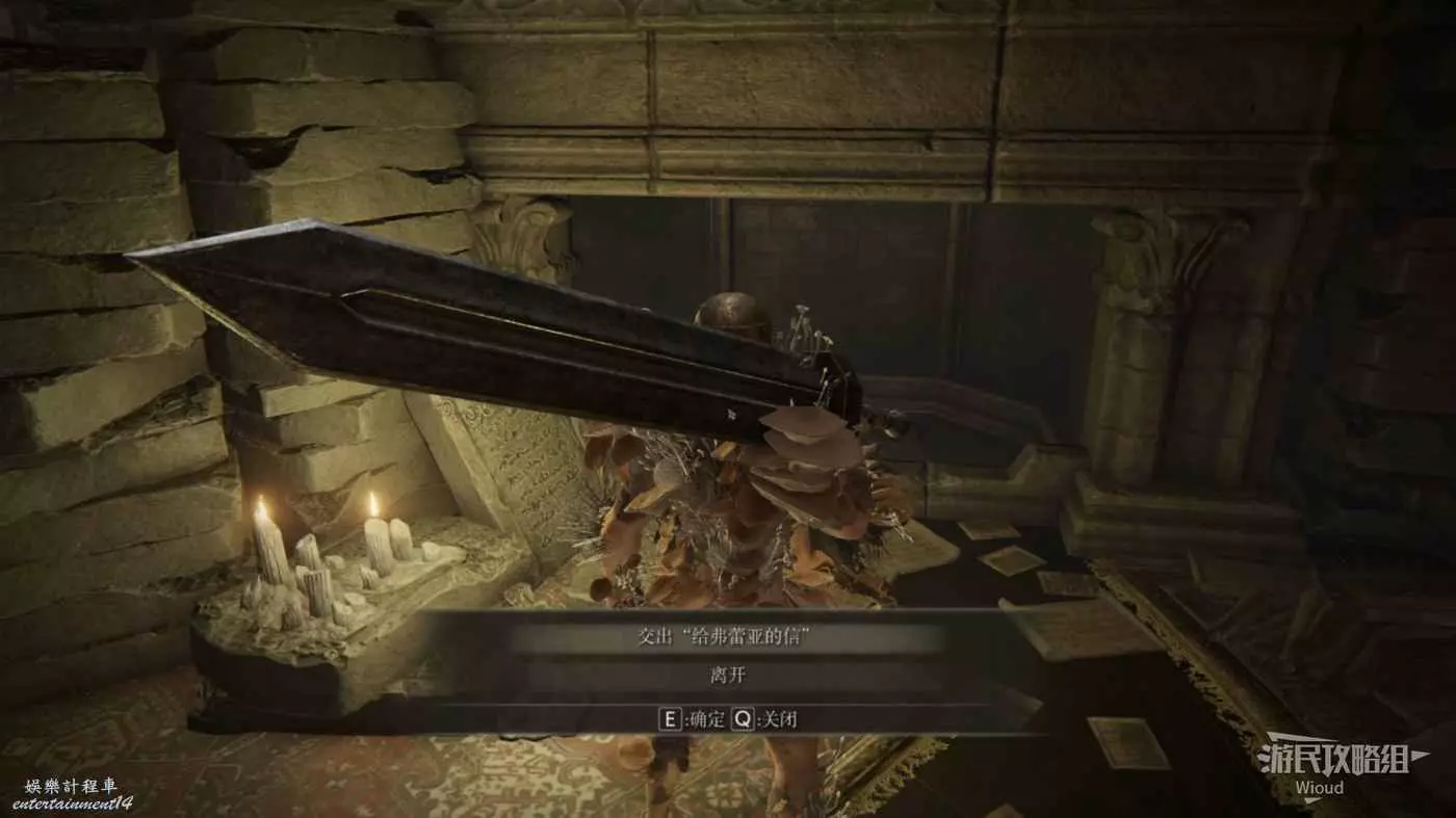 傳送到賜福【保藏庫(七樓)】,將信交給弗蕾亞並對話到重複,獲得【黃金獅子盾】。