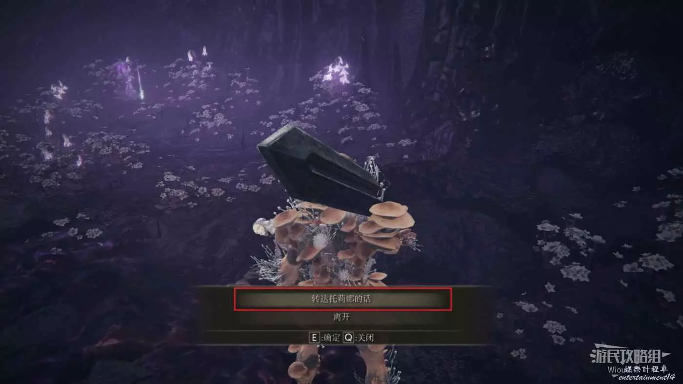 與裡面的托莉娜對話,選擇【吸取花蜜】,角色之後會死亡,傳送到賜福【通往坡的十字記號】將托莉娜的位置告知休裡耶,再傳送回來。
