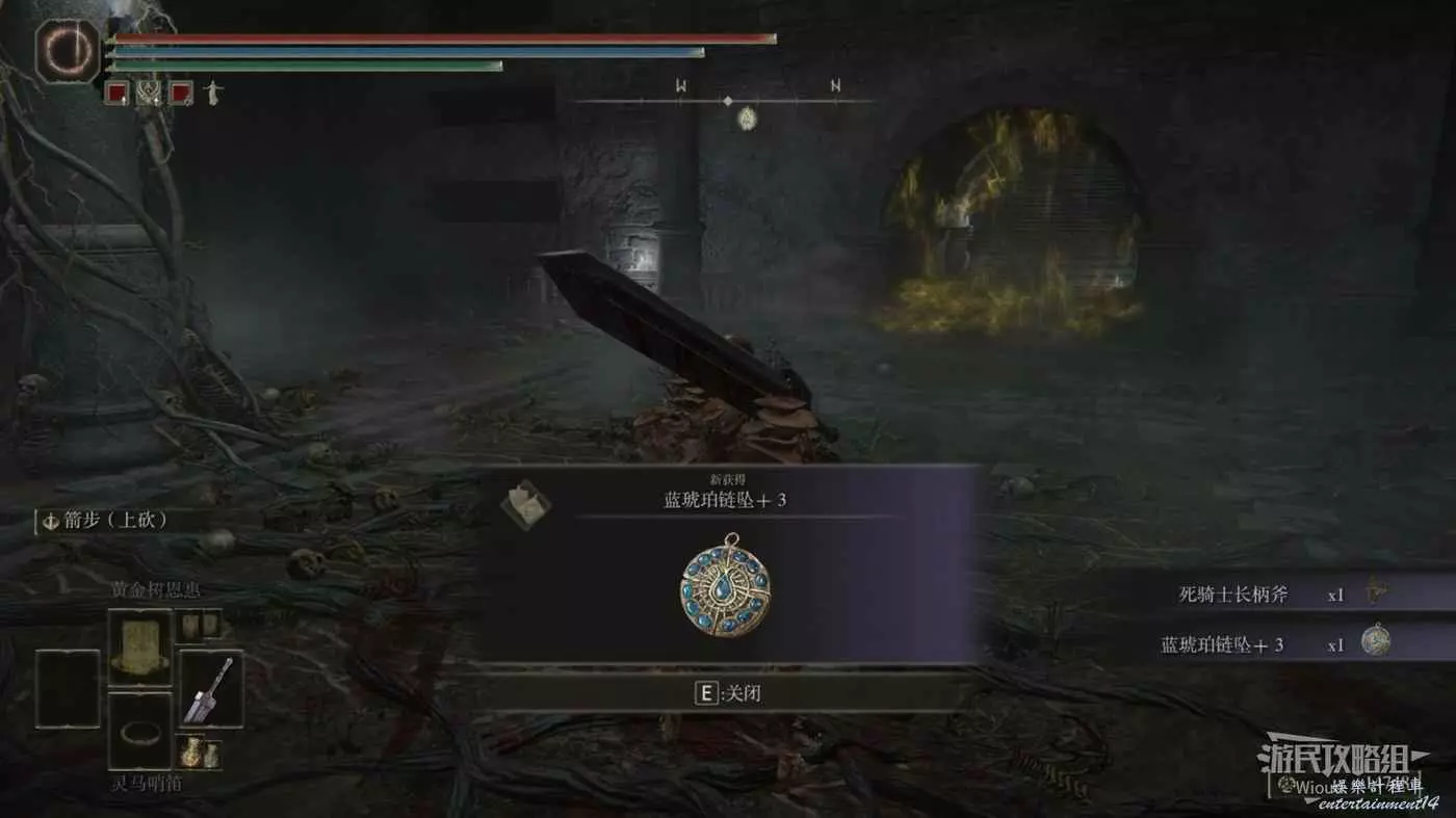 擊敗此處的BOSS死騎士,即可獲得護符【紅琥珀鏈墜+3】