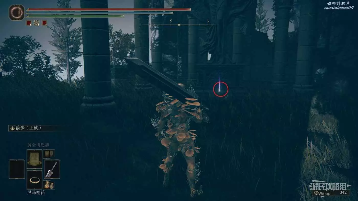 我們從賜福【勞弗古遺跡(西方)】出發,進入旁邊遺跡入口,一直走到2樓遺跡外的森林。