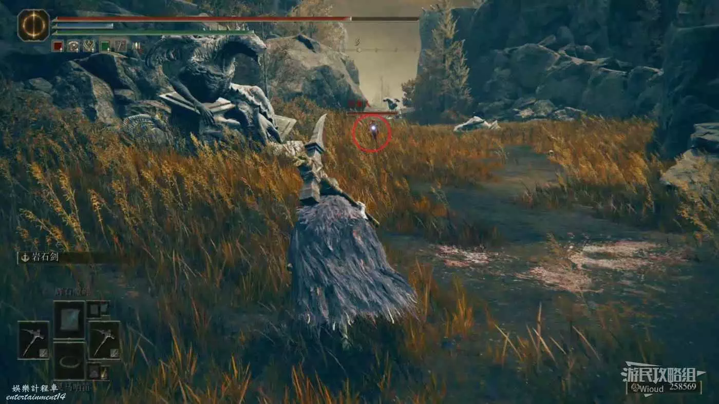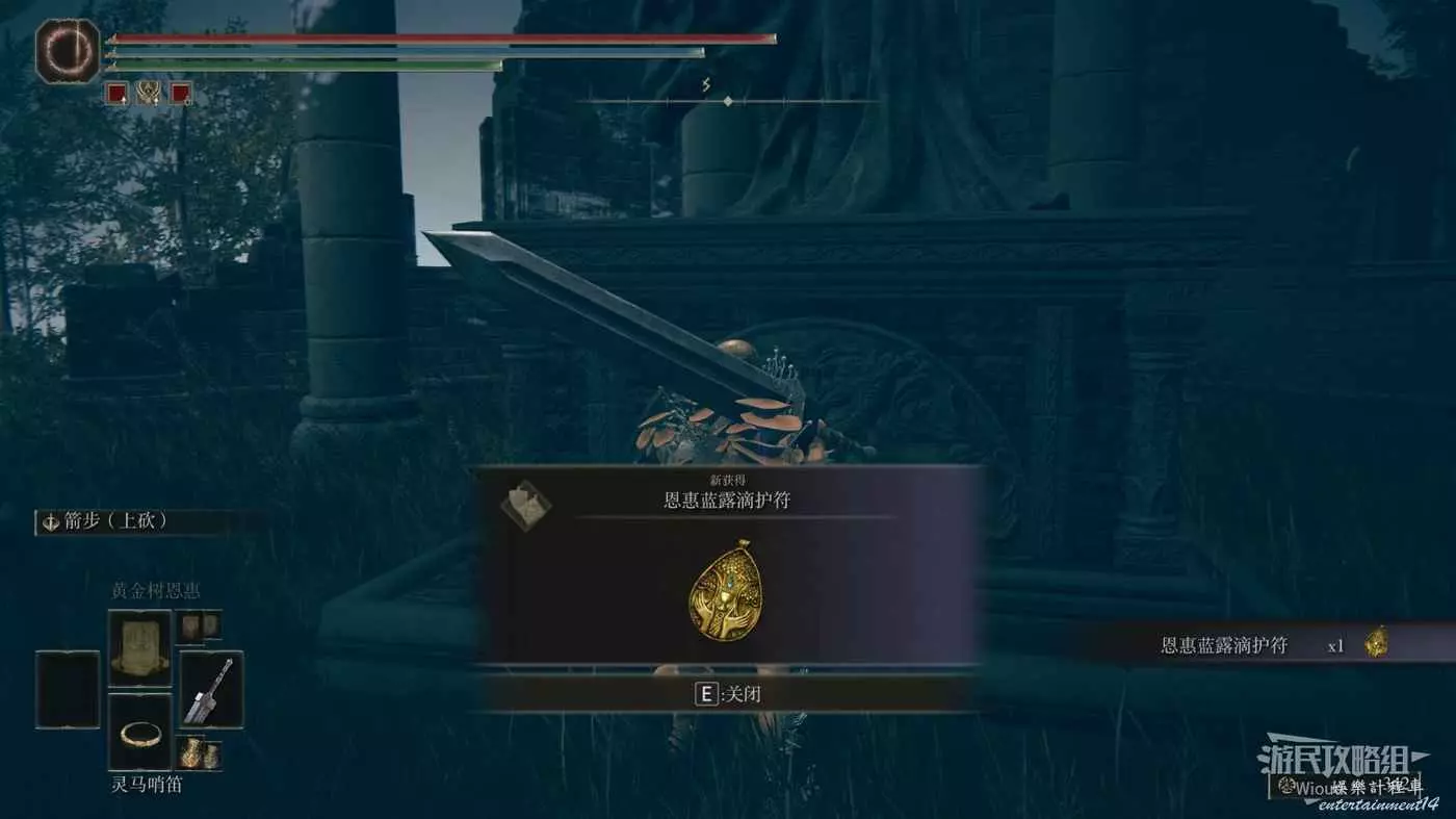 此護符是從賜福【勞弗古遺跡(西方)】附近的寶箱中獲得,我們從這個賜福點出發,進入前方的遺跡建築內。