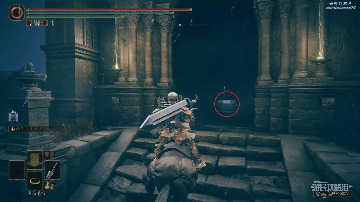 神殿鎮廢墟內部的路線非常簡單,沿著路一直往頂層走,寶箱就在頂層的房間裡。