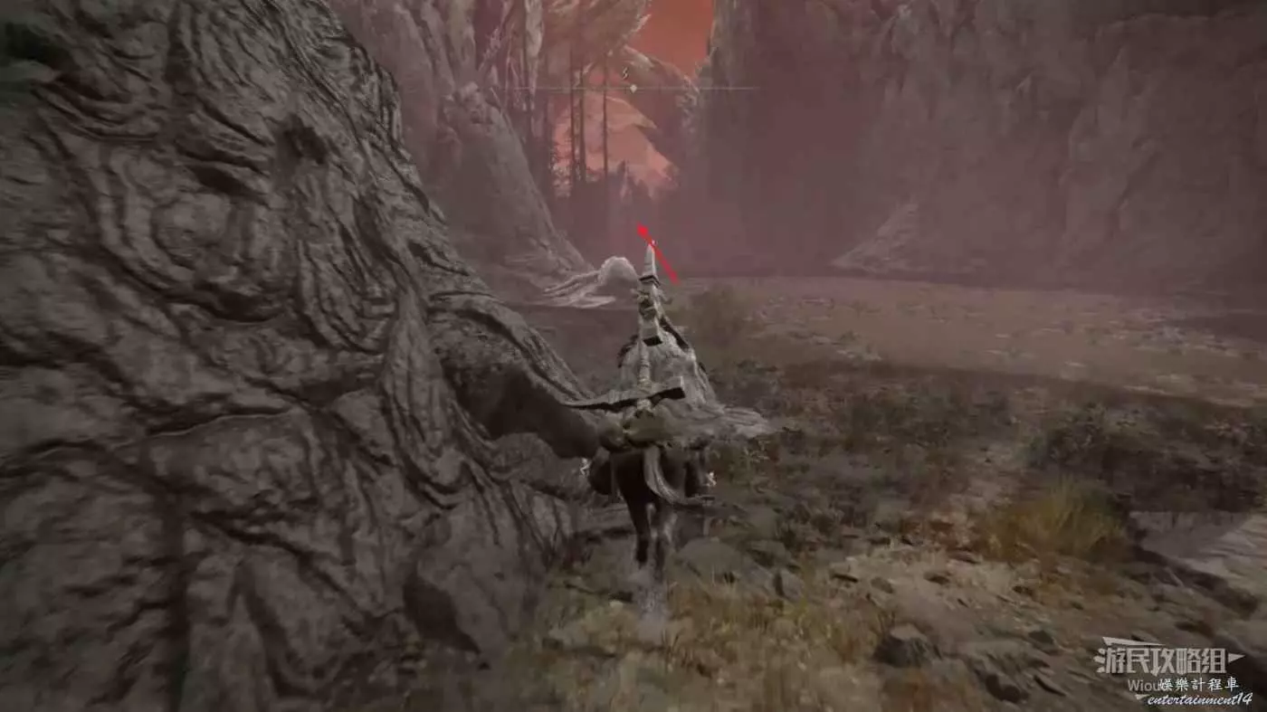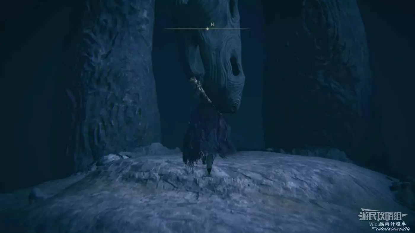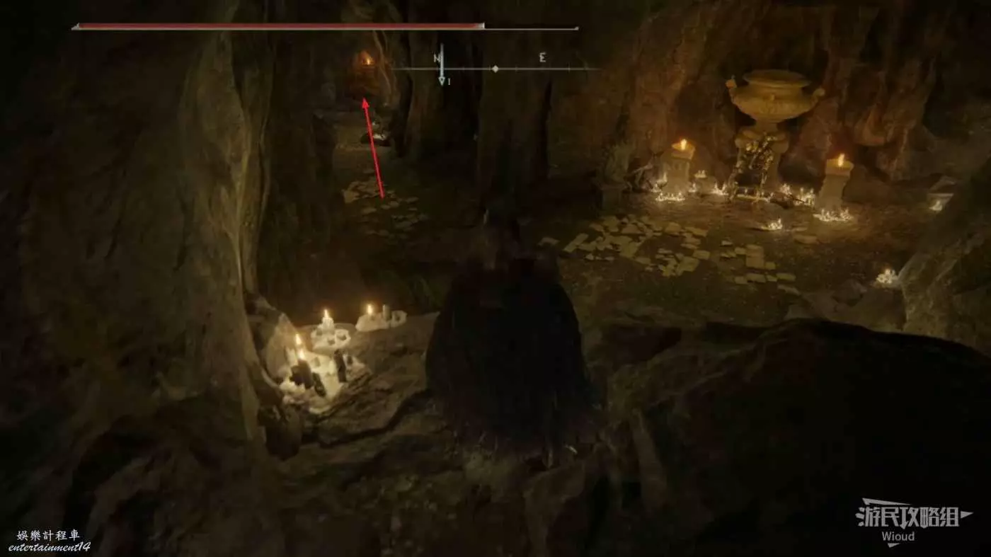 傳送到賜福【穆斯廢墟】,往右下走一段距離就能找到位於穆斯廢墟的地洞。