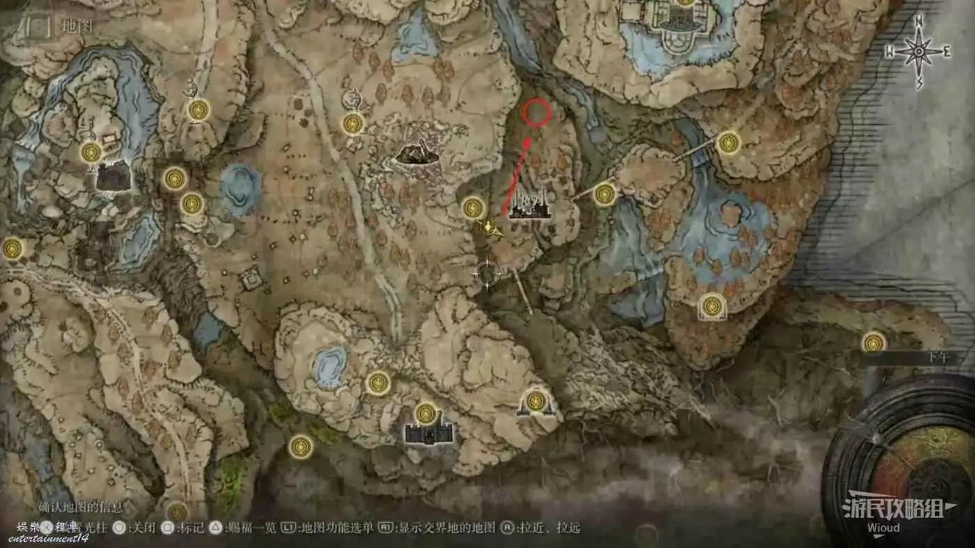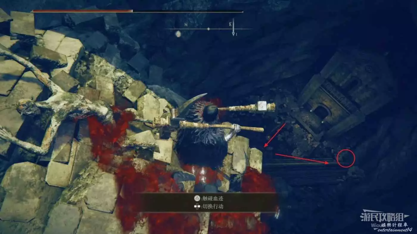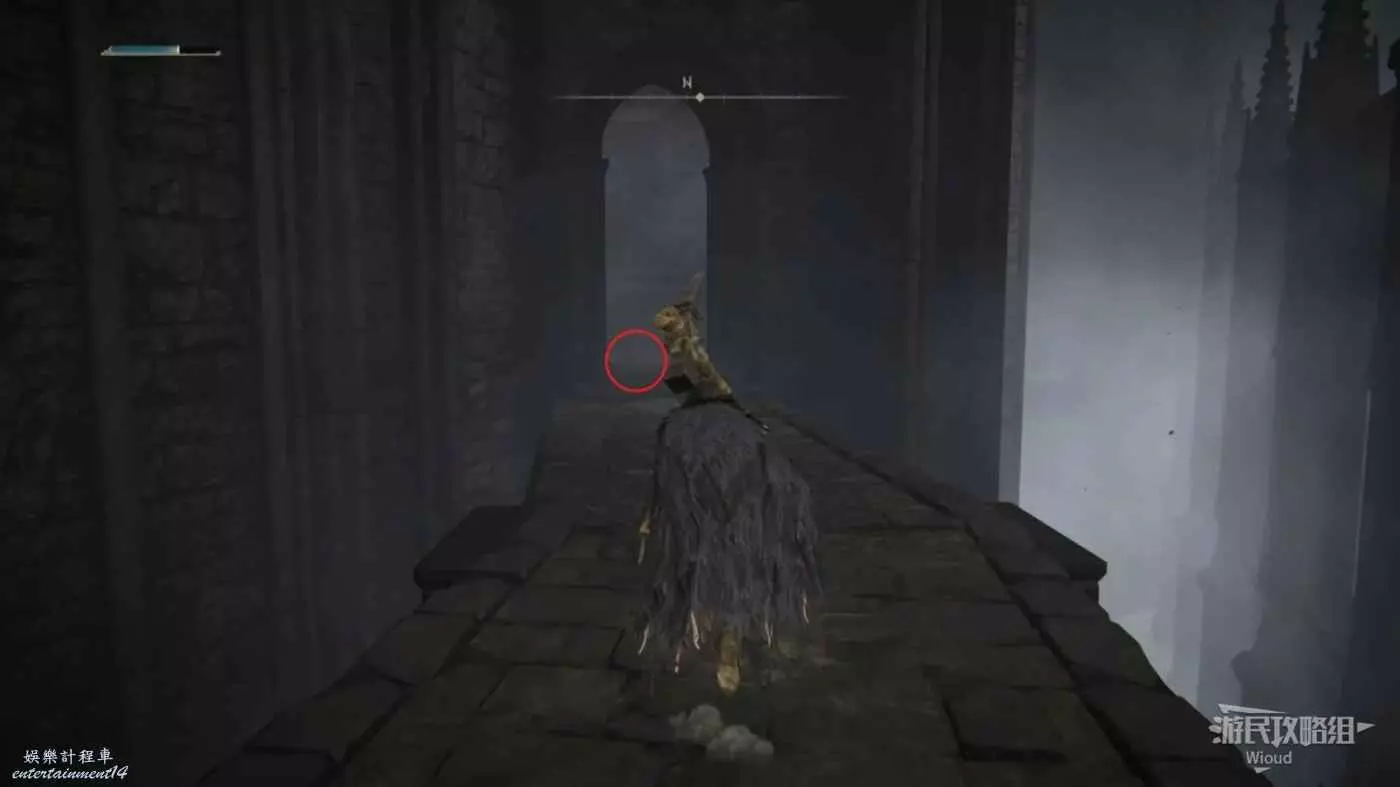 傳送到賜福【穆斯廢墟】,往右下走一段距離就能找到位於穆斯廢墟的地洞。
