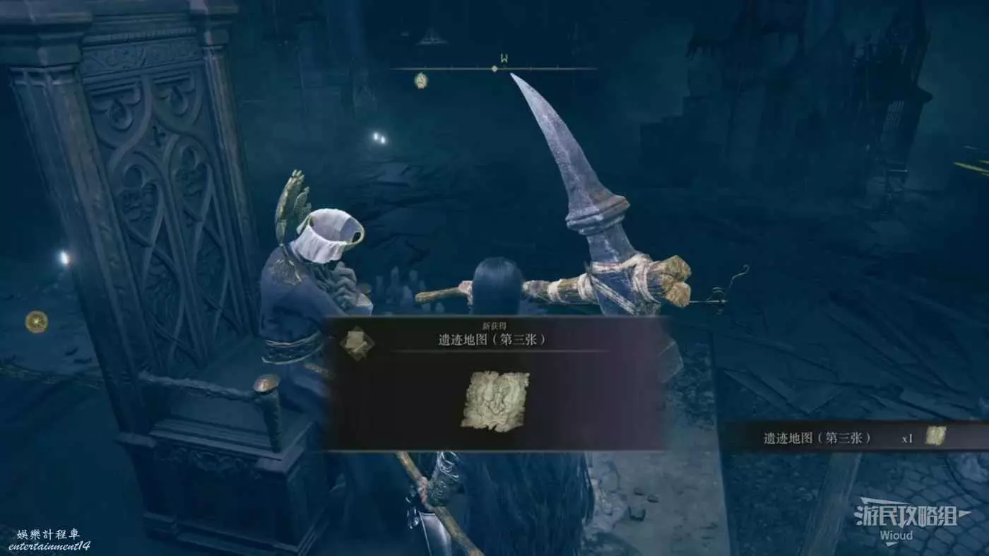 將兩個指頭廢墟的吊鐘全部吹響後回到教堂與尤彌爾對話,它會把第三章廢墟地圖交給我們,其實第三個廢墟就是這個教堂。