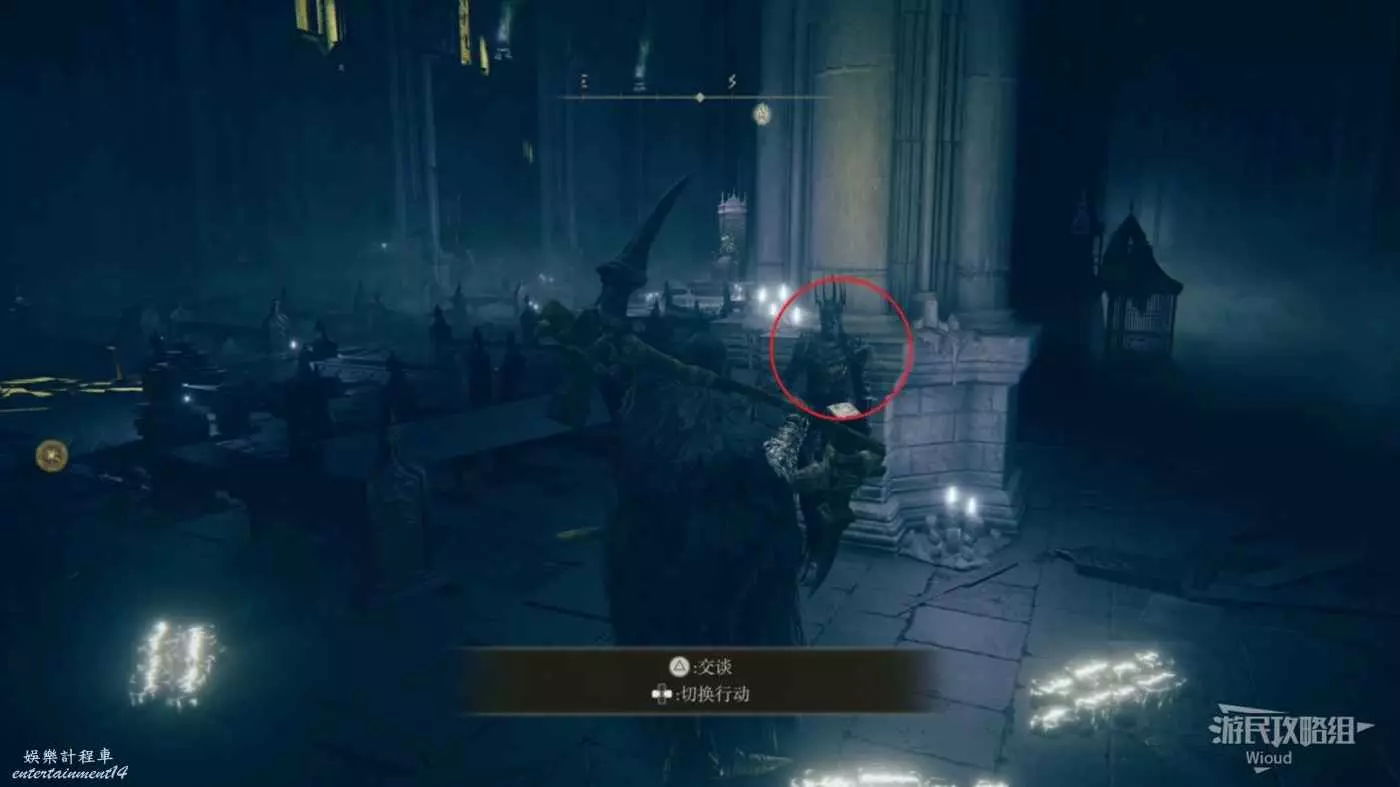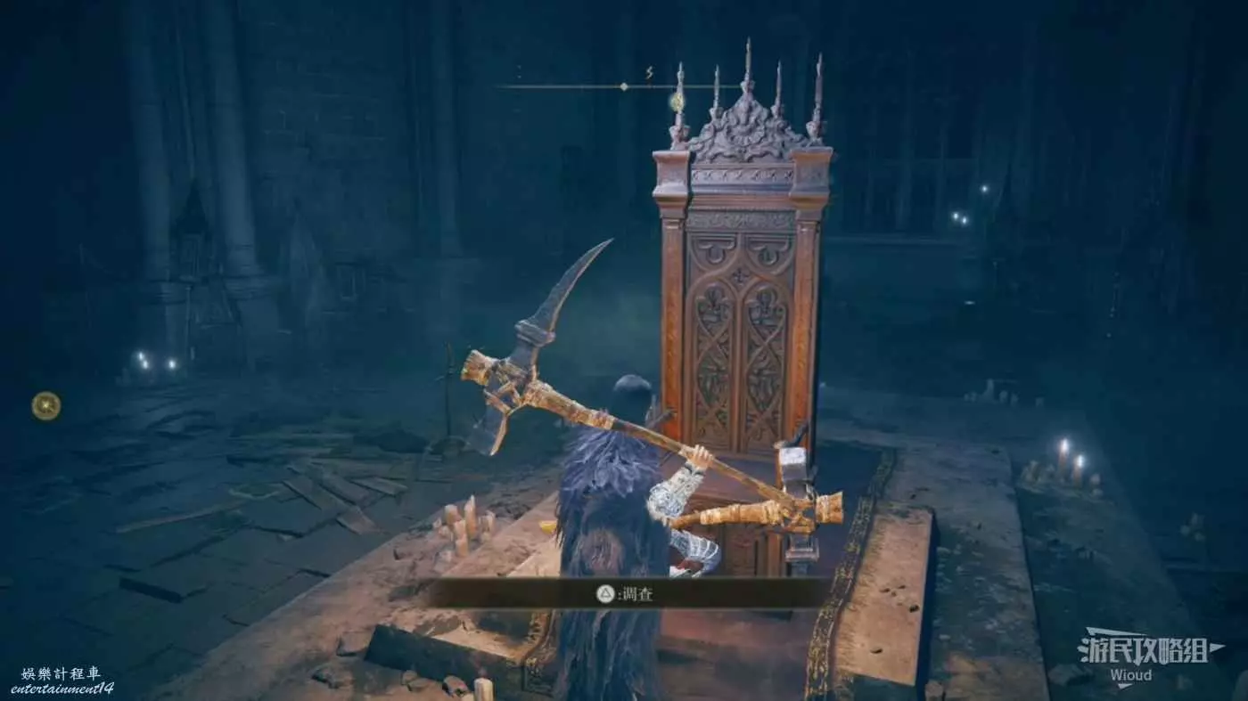 將指頭之母梅蒂爾擊敗後傳送會教堂,與空的座椅互動觸發約蘭的入侵劇情。