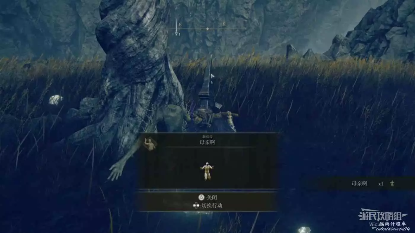 村子上方有一個枯樹,此處可以撿到重要動作【母親啊】。