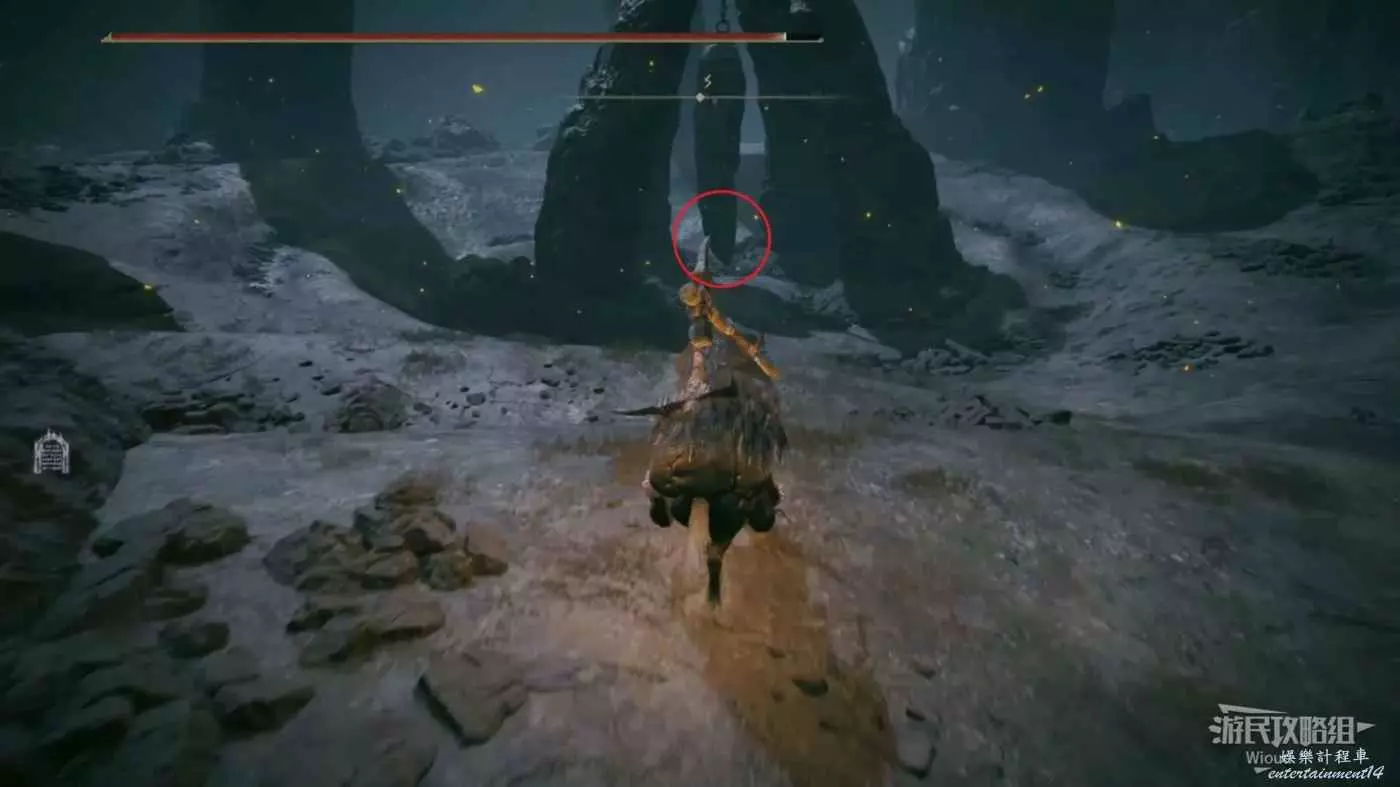 與盡頭位置的吊鐘互動進入“指頭之母”梅蒂爾的BOSS戰區域。