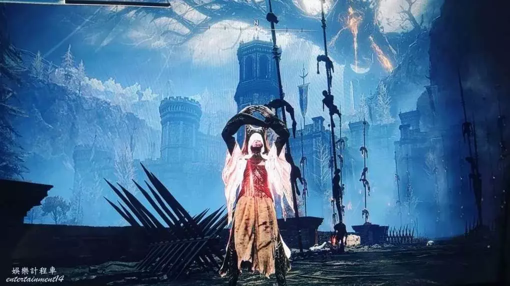 過橋後前面一點的城前賜福點,前面又是一座橋站著個巨人守路