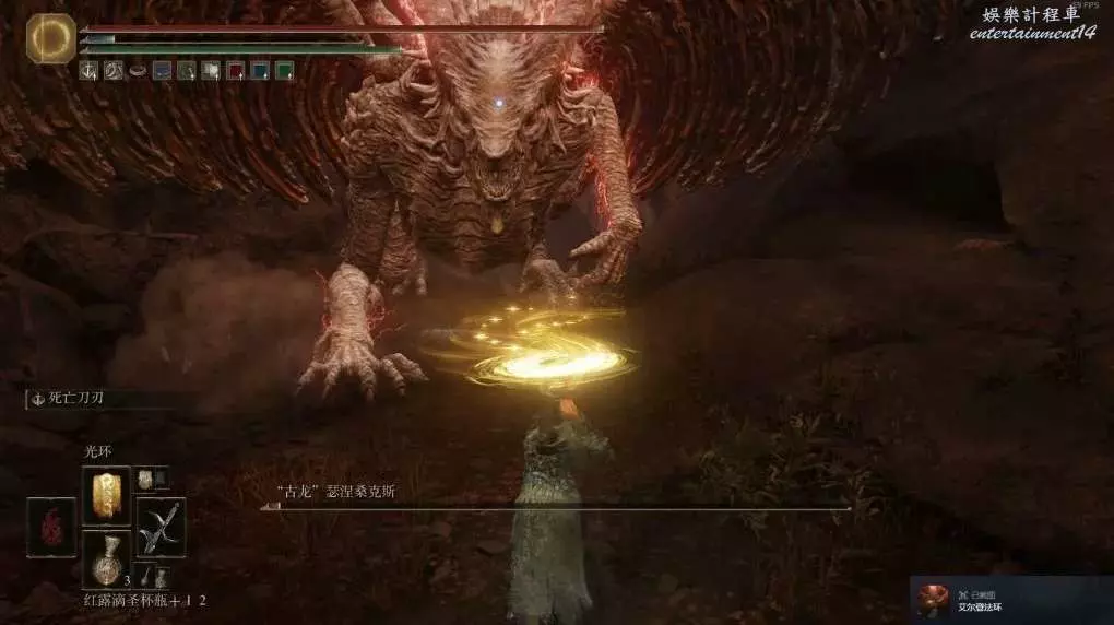 艾爾登法環 (Elden Ring) 黃金樹幽影DLC 古龍瑟涅桑克斯蹺課打法 21 6 月 2024-06-21 廣告 作者:飛機上月球 來源:NGA 位置 在尖刺山中段篝火前面,給狂龍貝勒守門。 打法建議 這怪超過場地就會變得很笨很笨而且再超過就會瞬移回去,所以建議遠端攻擊拉滿,我選用3耗藍有往返的光環,亂殺。 Ps:不要叫靈體。