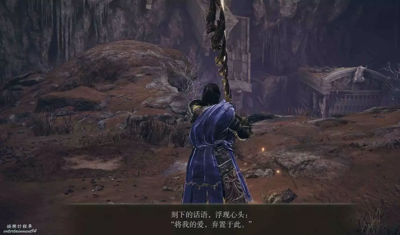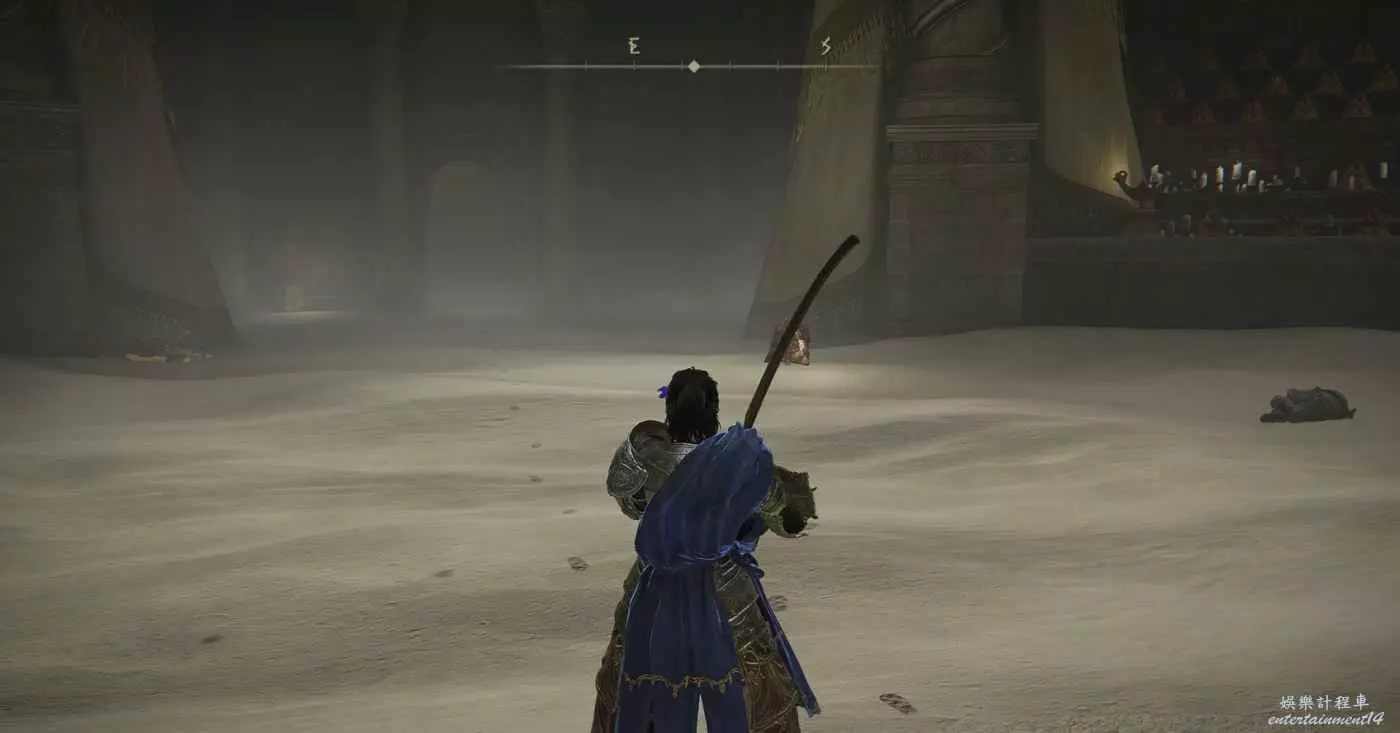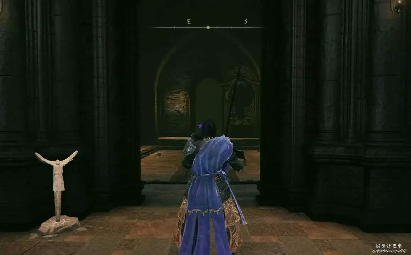 裡面會看到一個瑪莉卡雕像,旁邊有一則官方諫言:憐憫那些巫者吧。就是在提示我們在波尼村撿到的重要道具肢體動作(母親啊!)對著雕像釋放肢體動作,暗門就會打開。