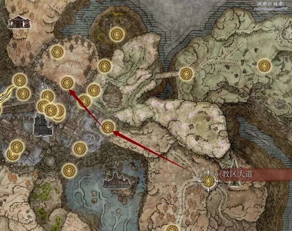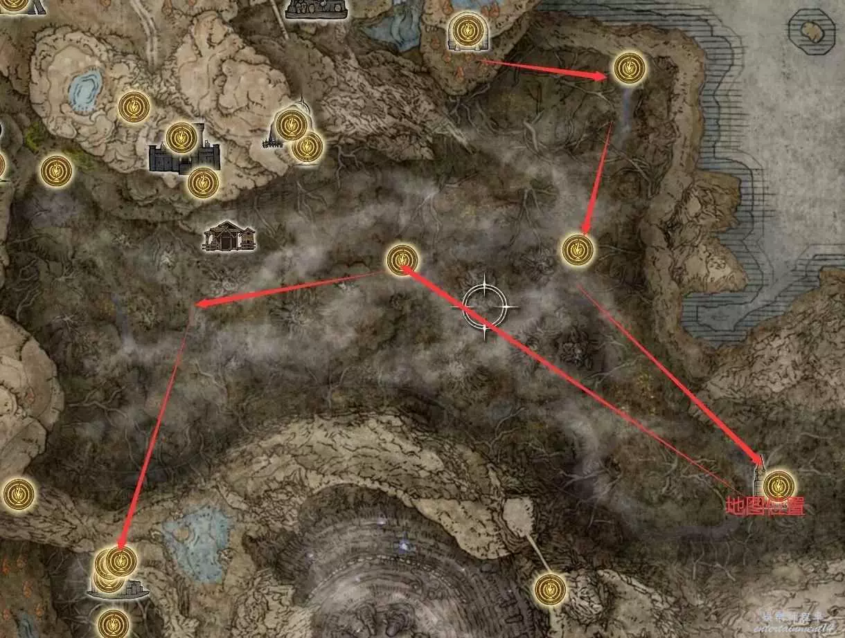 這個地方又大又空沒啥好說的,地圖位置很陰間,箭頭末尾是米德拉的府邸,在那可以擊敗癲火之王