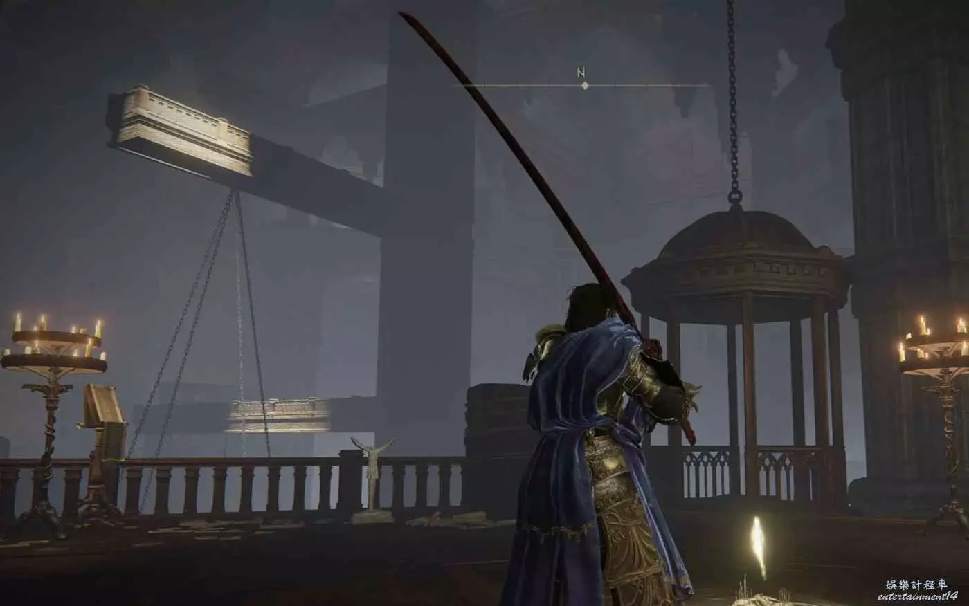 回到沉水禮拜堂,繼續進入,這次走近處的升降梯,這個升降梯會向上,帶我們來到剛出從房頂跳下來開水閘的位置。(最深處有個教堂,需要幽影城裡面的一個祈禱室鑰匙才能開門,裡面有個騎士,給他黑暗敷眼膜會獲得他的武器給他賜福敷眼膜會獲得骨灰)