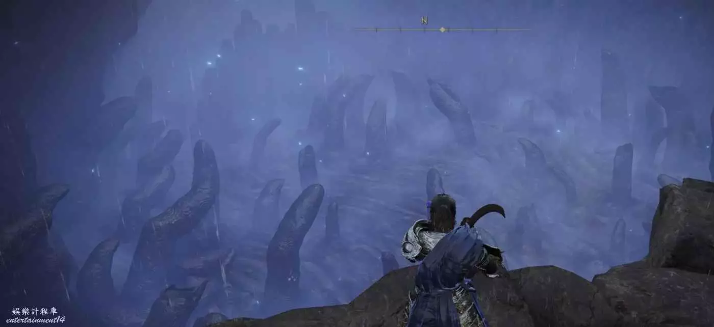 (懸崖處的截圖跳到巨大的石碑上即可)隨後在指頭遺跡的最中心處發現一口鐘,吹響即可(這裡地圖很空)