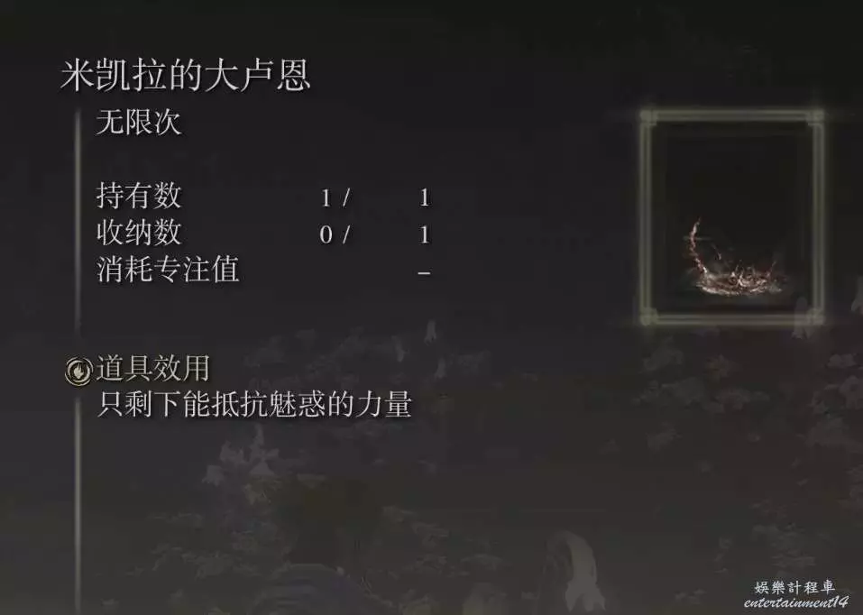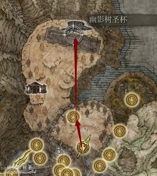 進入深處的升降梯會向下走。來到禮樹暗道,一路向前來到幽影樹的樹腳,擊敗追憶BOSS影輪草。同時還會獲得米凱拉的大盧恩