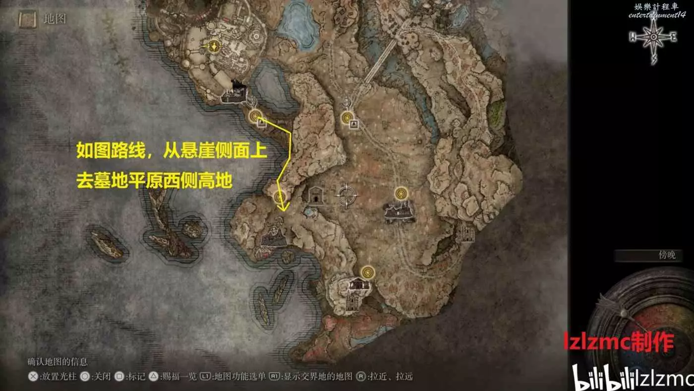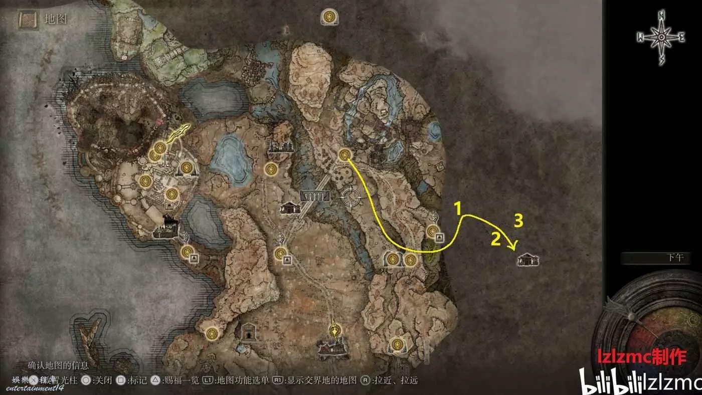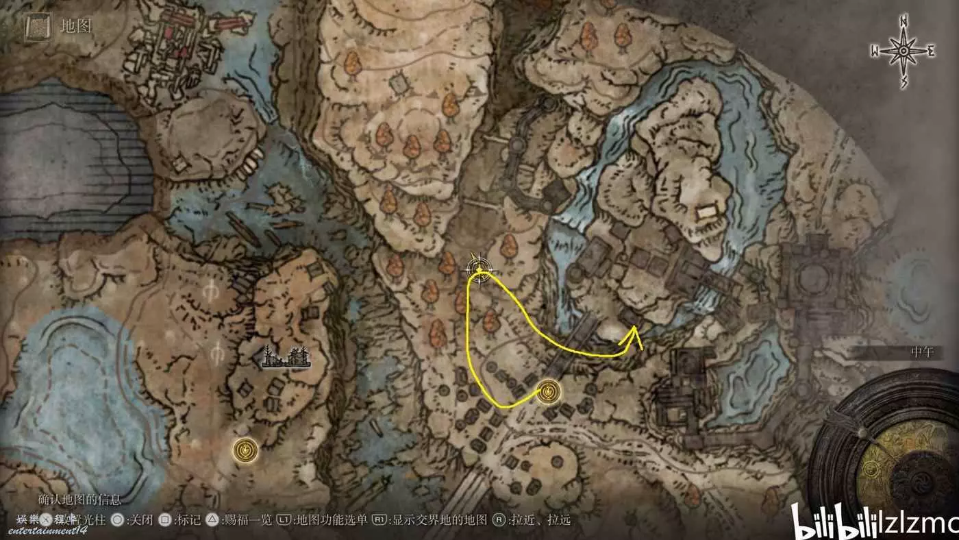如圖黃顏色的線就是路線,賜福城的前方出發。