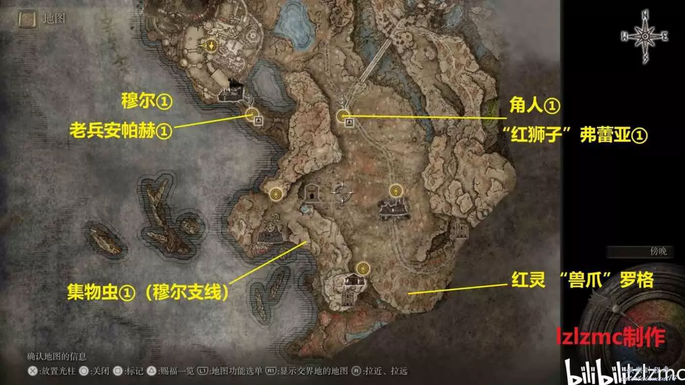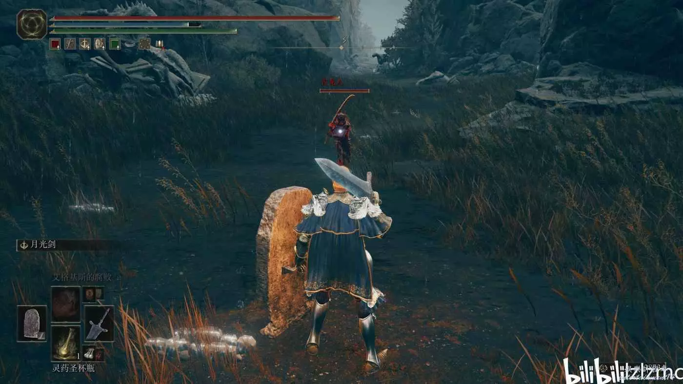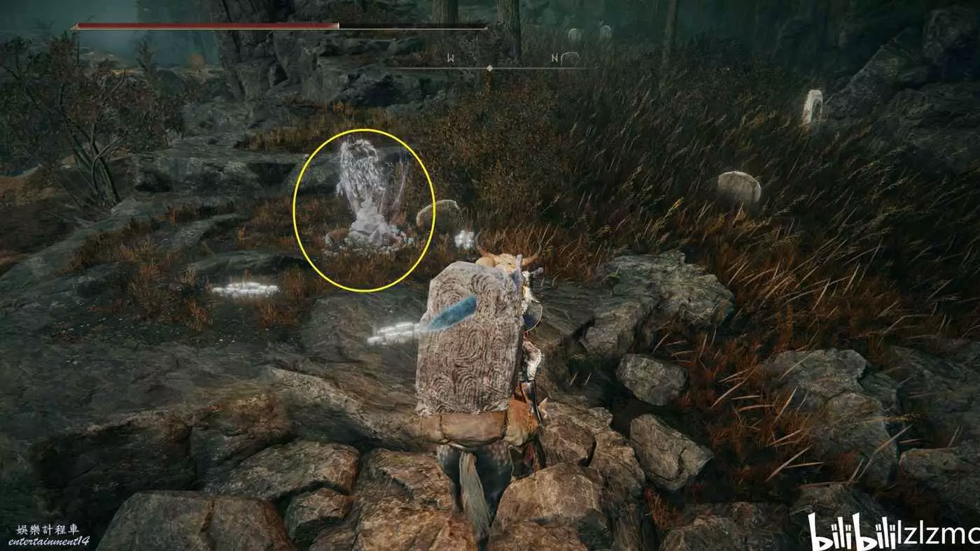 紅靈“獸爪”羅格:賜福墓地平原,東南方如圖森林中間,擊敗後獲得武器“野獸爪”。可以用名刀月隱,或者舉盾二人轉背刺來打。