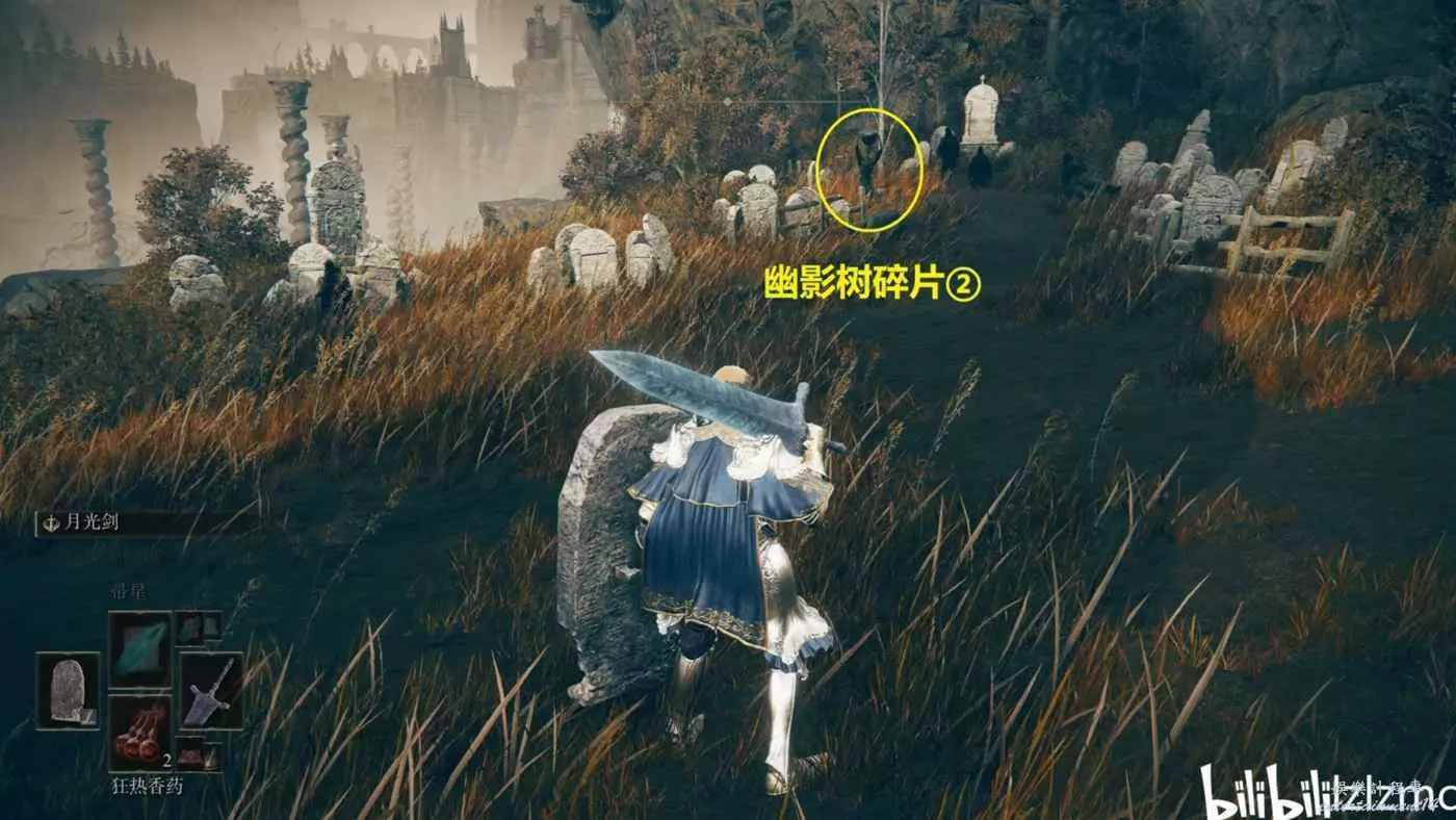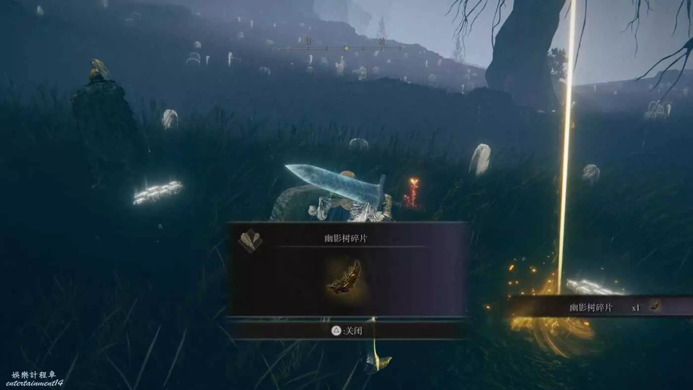 幽影樹碎片⑧:賜福通柱坡的十字記號,賜福旁米凱拉的十字記號處拾取。