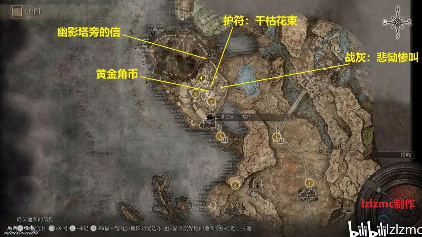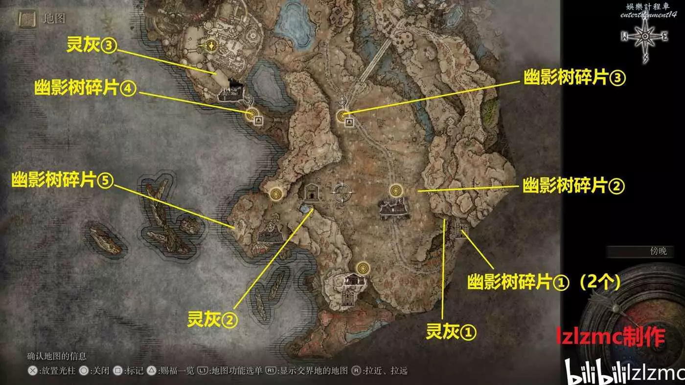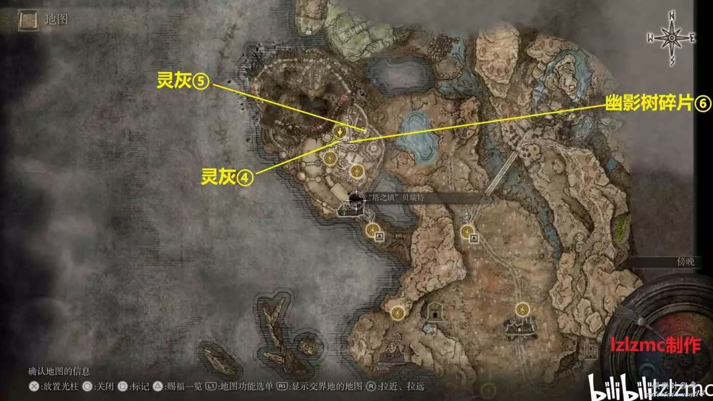 幽影樹碎片⑥:塔之鎮內部的米凱拉十字處拾取,具體路線看下面。