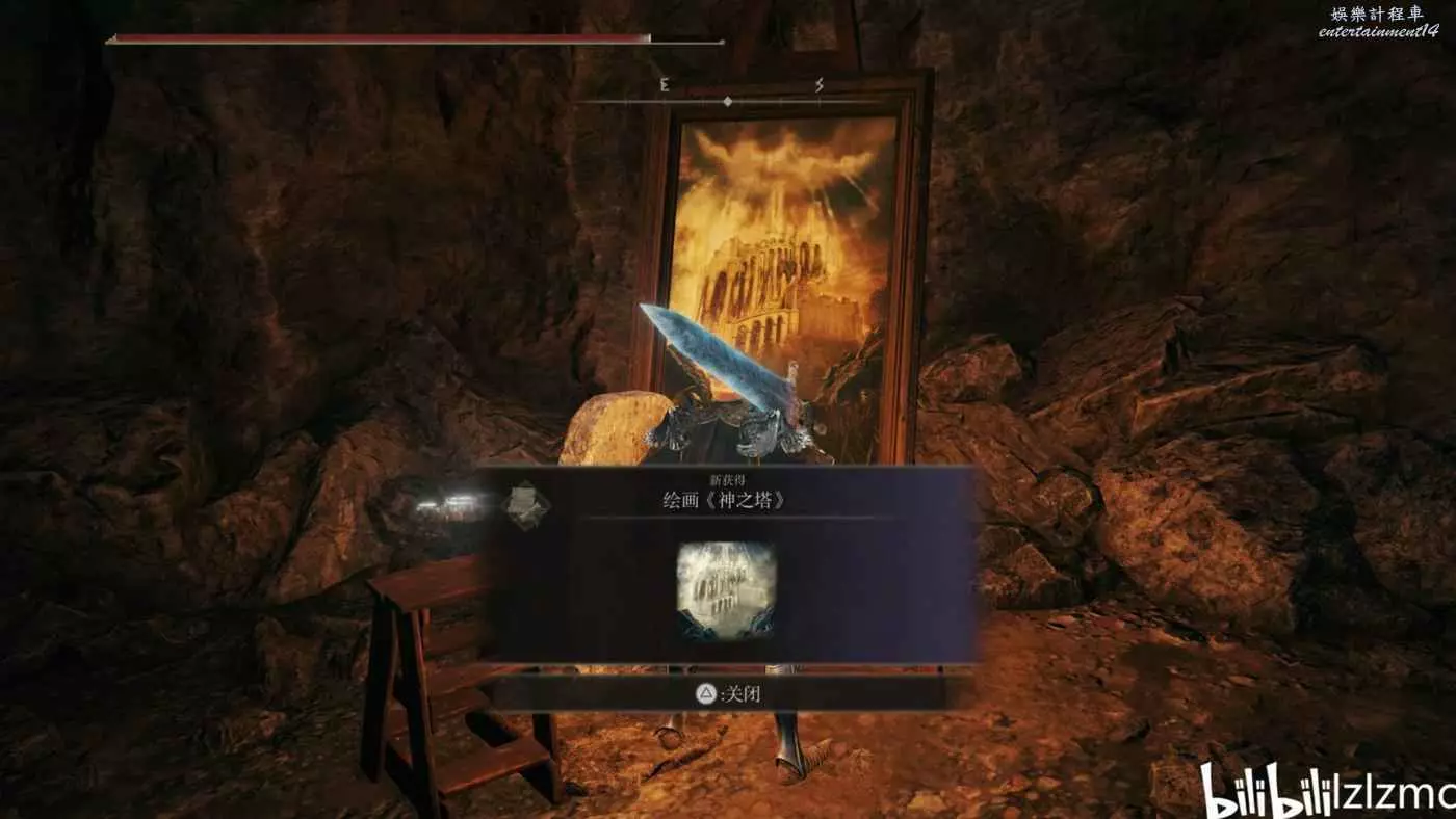 繪畫《神之塔》:火吻廢墟東北方的如圖山洞內。