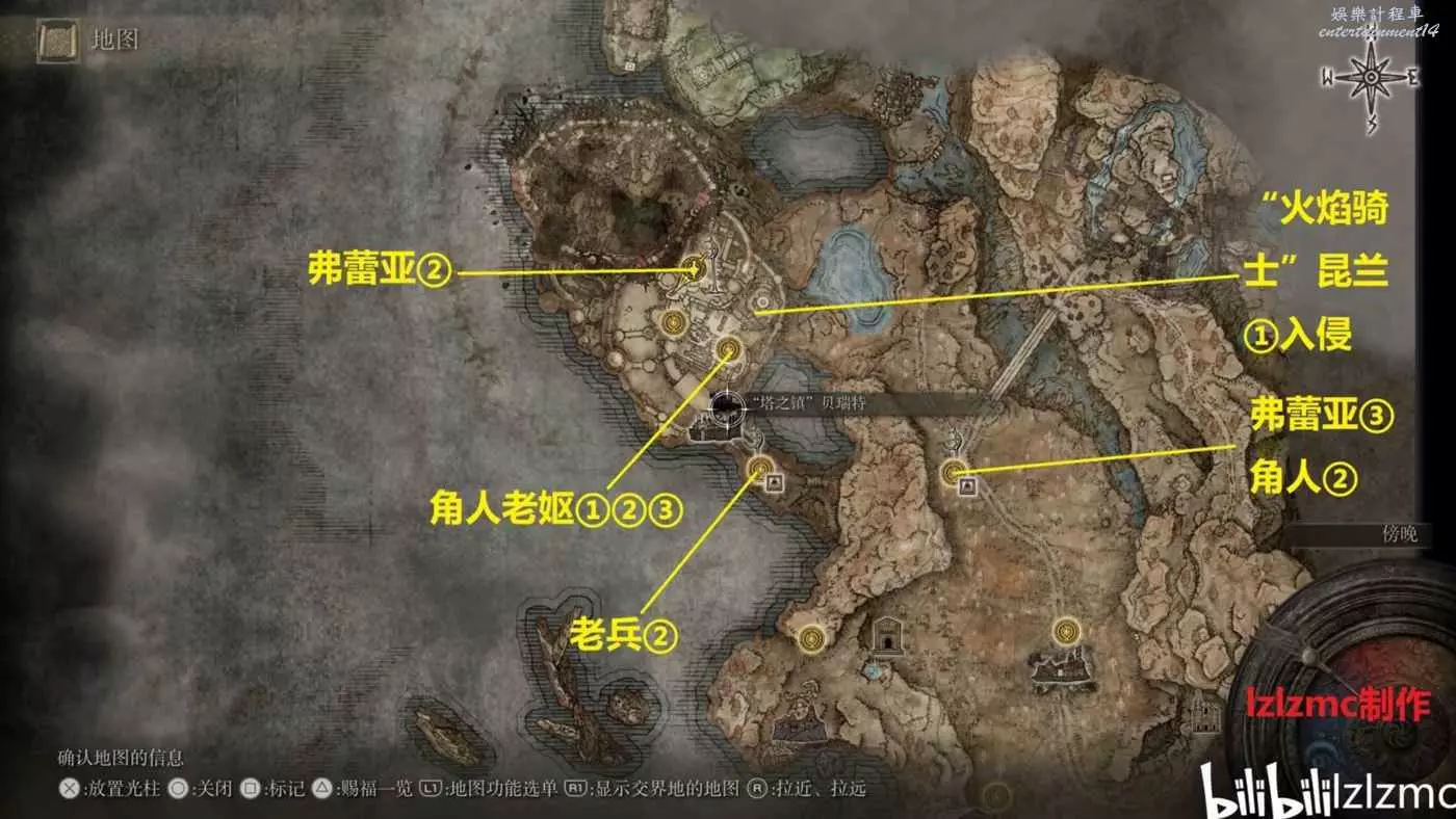 塔之鎮內部的米凱拉的十字跑圖路線: