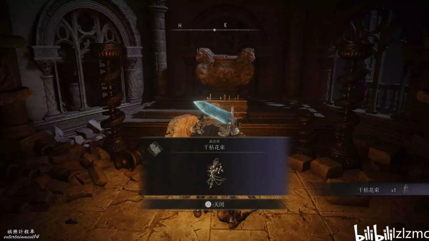 護符【乾枯花束】:就在上面幽影樹碎片⑥處,繼續向右走出去,就能看到一個祭壇,拾取獲得該護符。