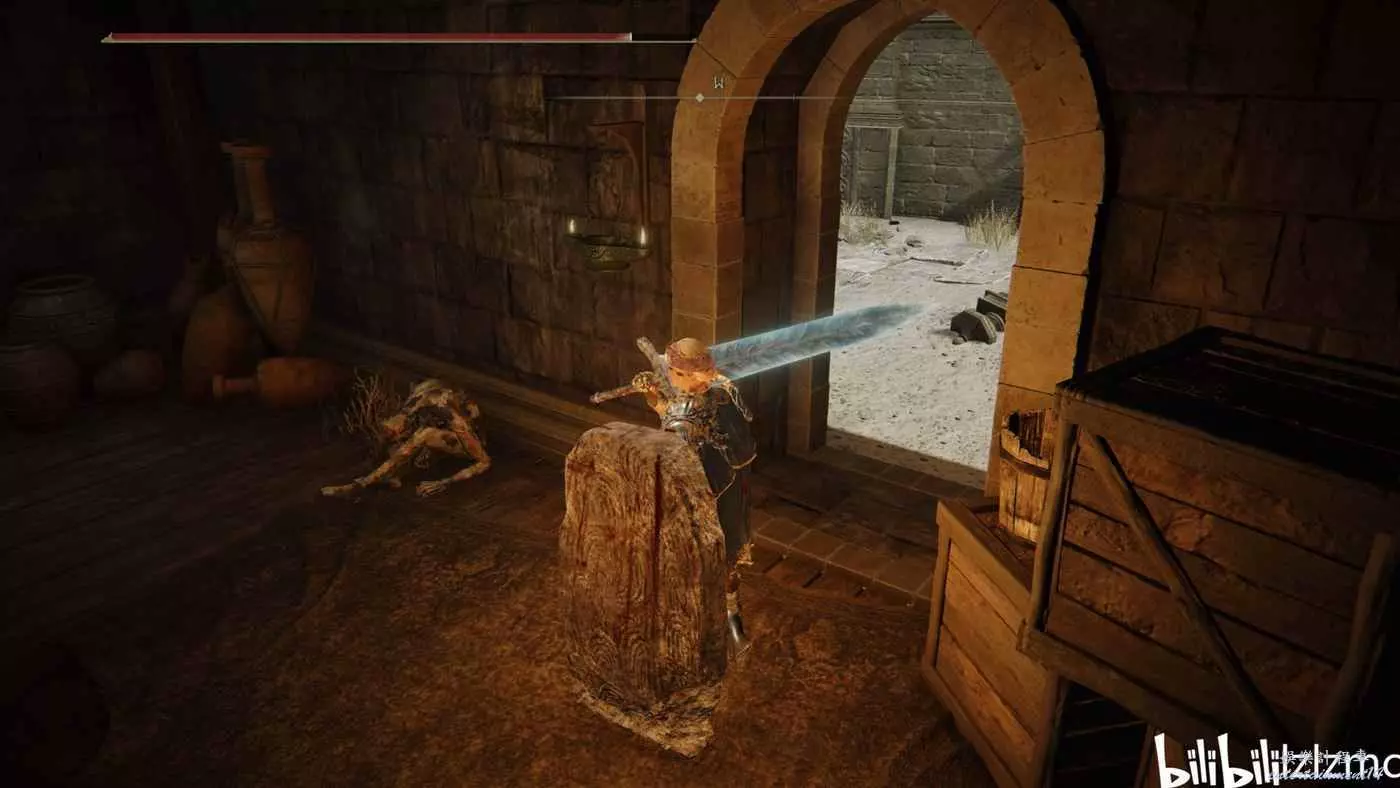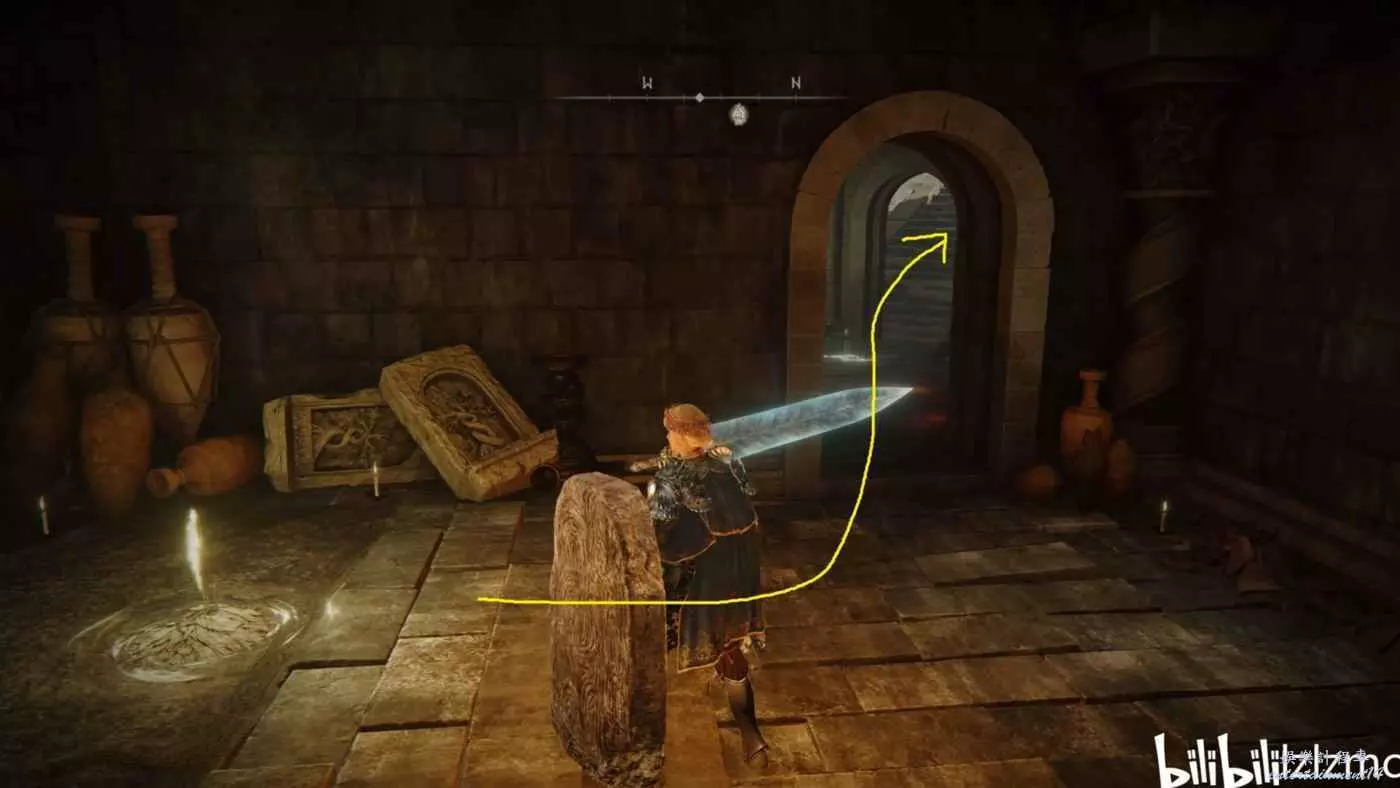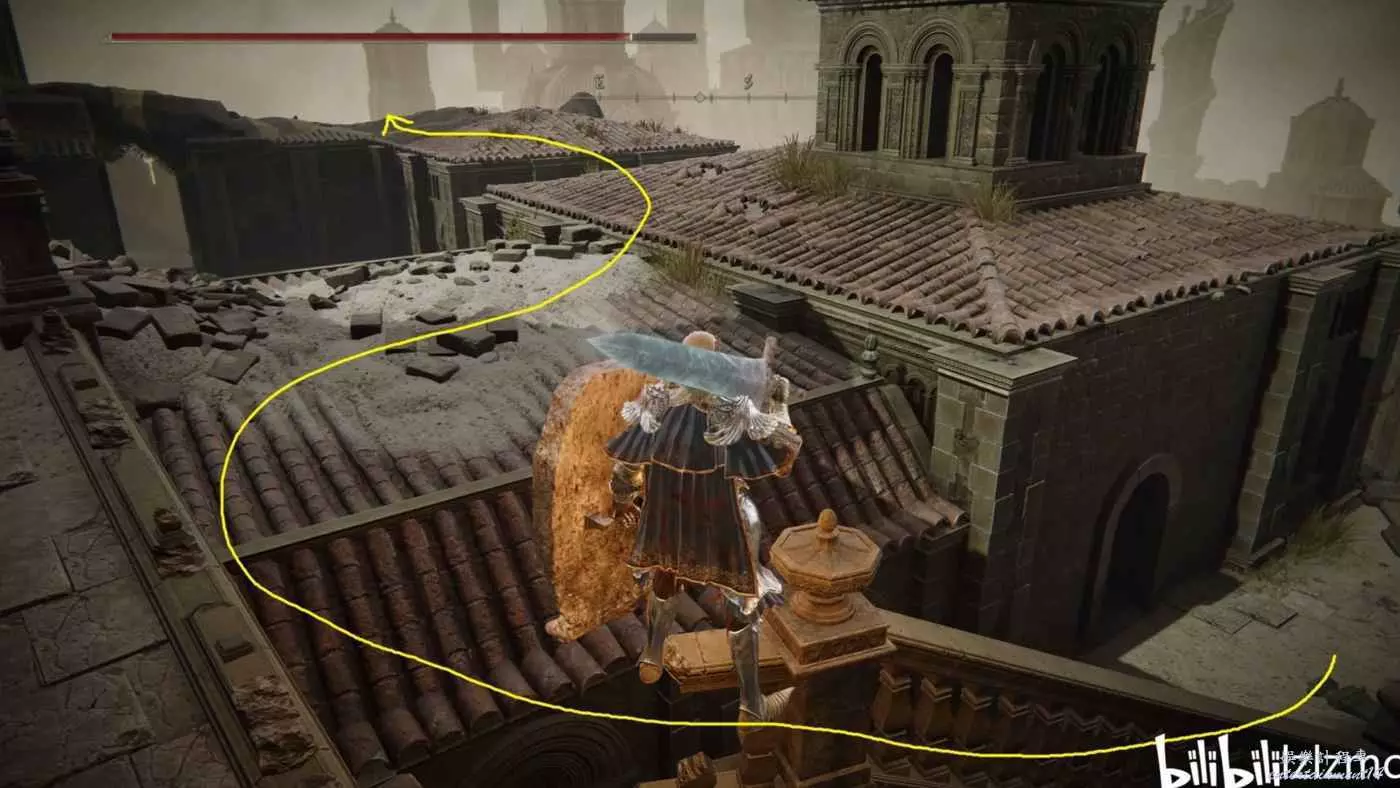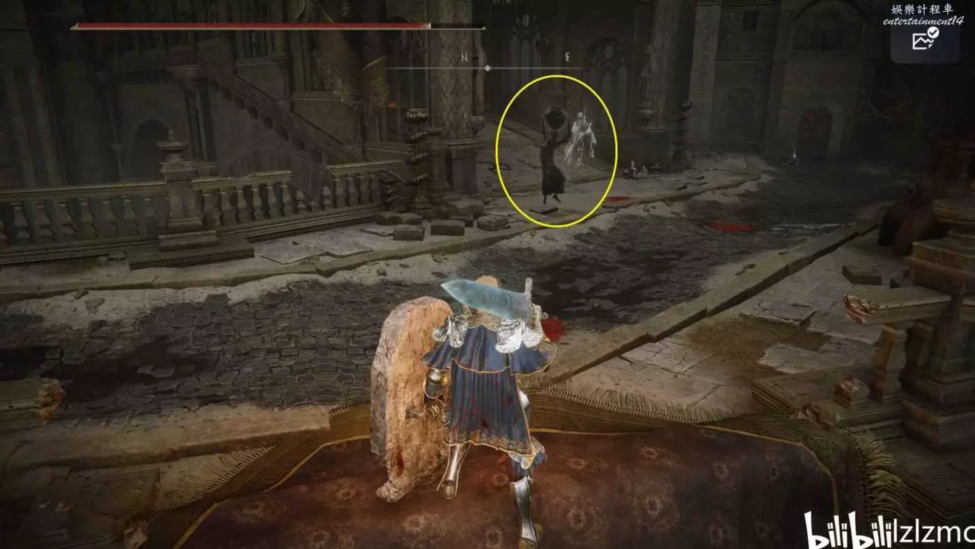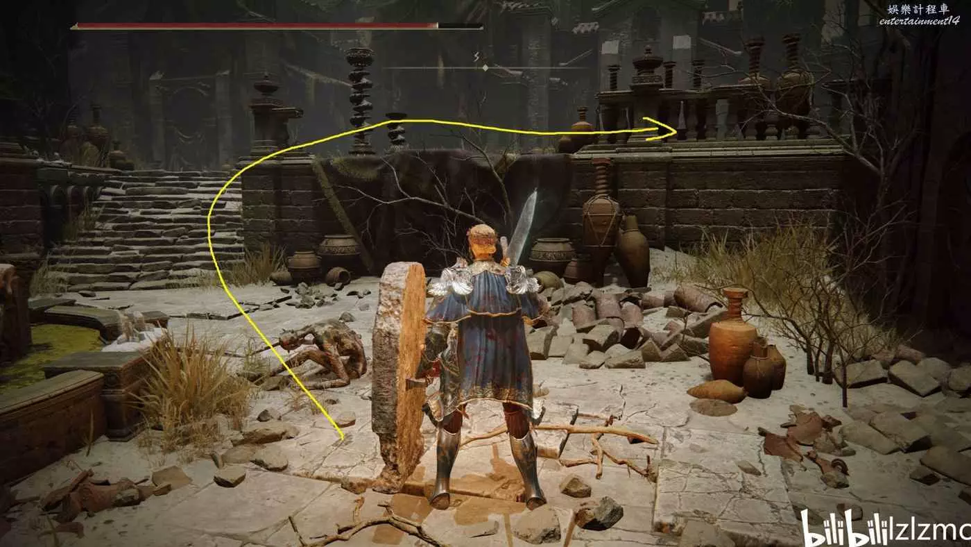 賜福民宅小祭壇出發,一直向右走,前面樓梯上去有個韌性極高的精英怪,要麼魔法要麼用帶霸體的武器換血。