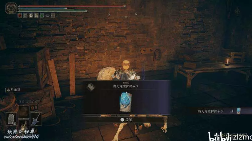 護符【魔力龍徽護符+3】:賜福城的前方,按照下面的路線,屋子內拾取。