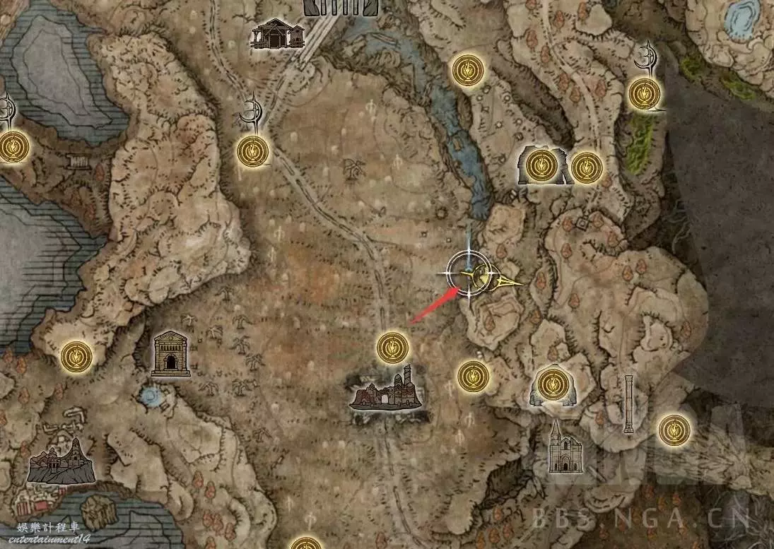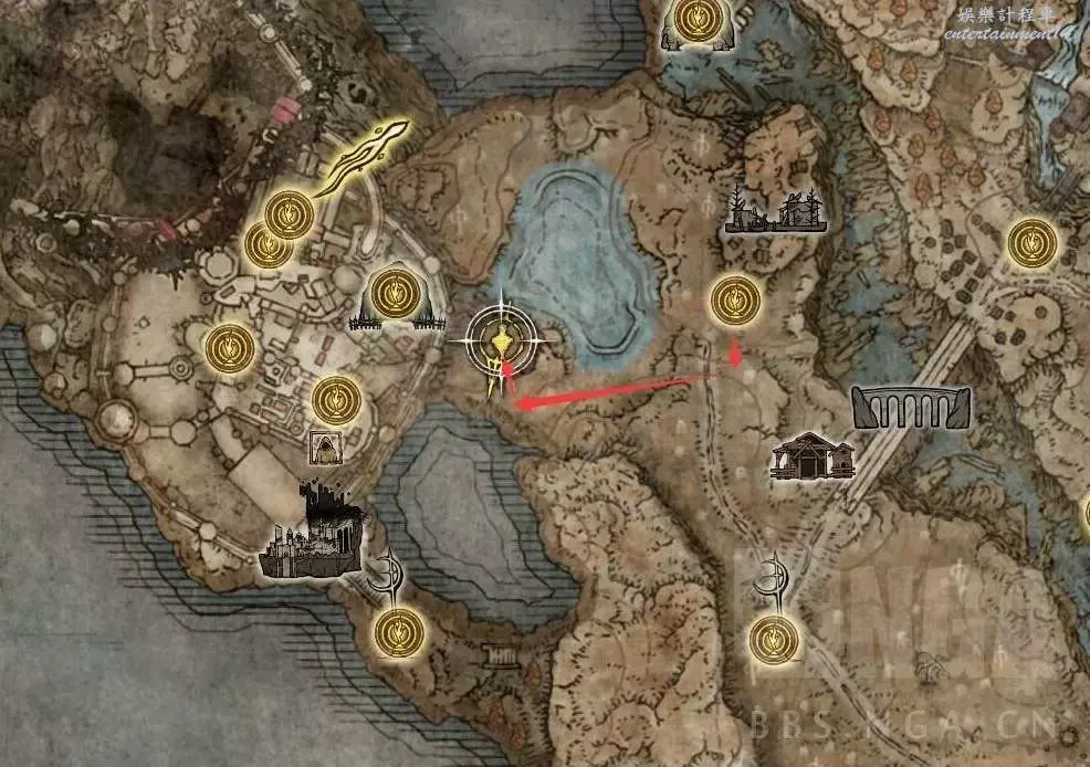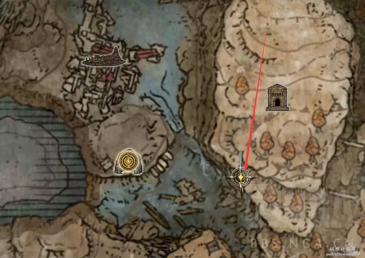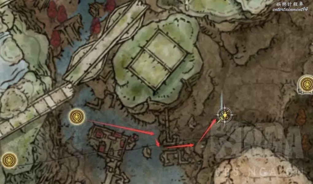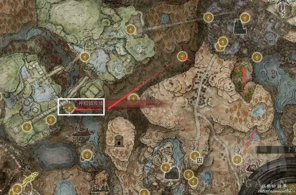 來到神殿鎮廢墟,沒開圖的兄弟看下紅色路徑,標註了,一路走即可。