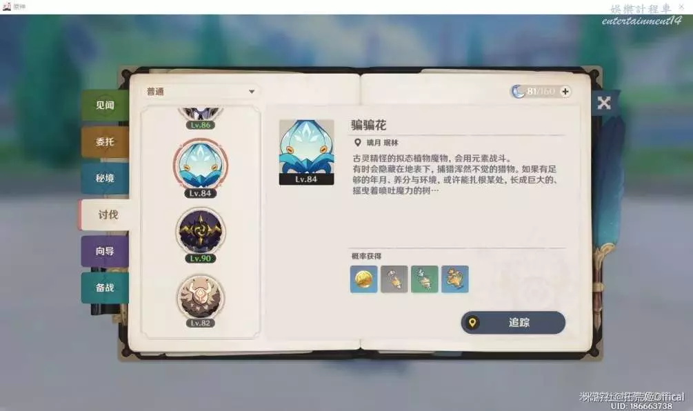 追蹤方式:點擊功能表打開冒險之證,選擇“討伐”,“普通”即可追蹤騙騙花。