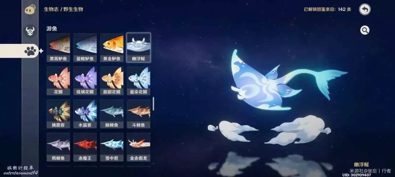 喜歡收藏、點亮圖鑒的朋友們,如果在你的遊魚類裡還缺一個的話,大幾率就是這個——幽浮鰩。它的位置在淵下宮裡,蛇腸之路到狹間之街的空中,飛過去觸碰就可以點亮圖鑒,也有說可以用弓箭射的。