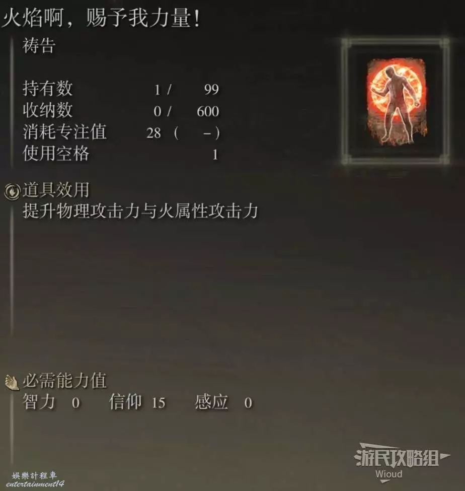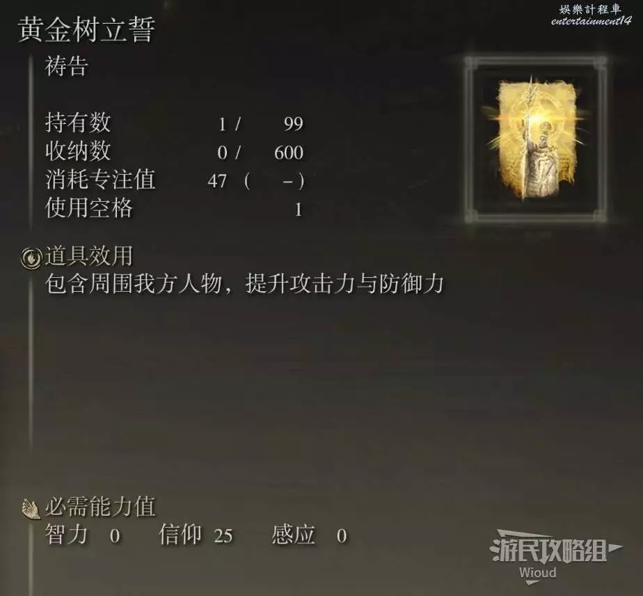 信仰:25(滿足黃金樹立誓與火焰啊賜予我力量的要求)