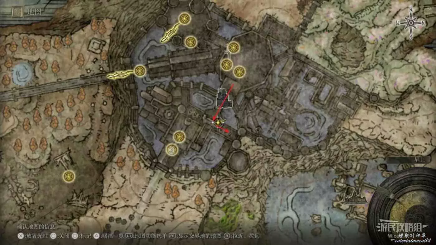 完事沖著E-S中間的方向一直走,就能看到不遠處的地圖石與一個教堂,解鎖地圖碎片-谷底。