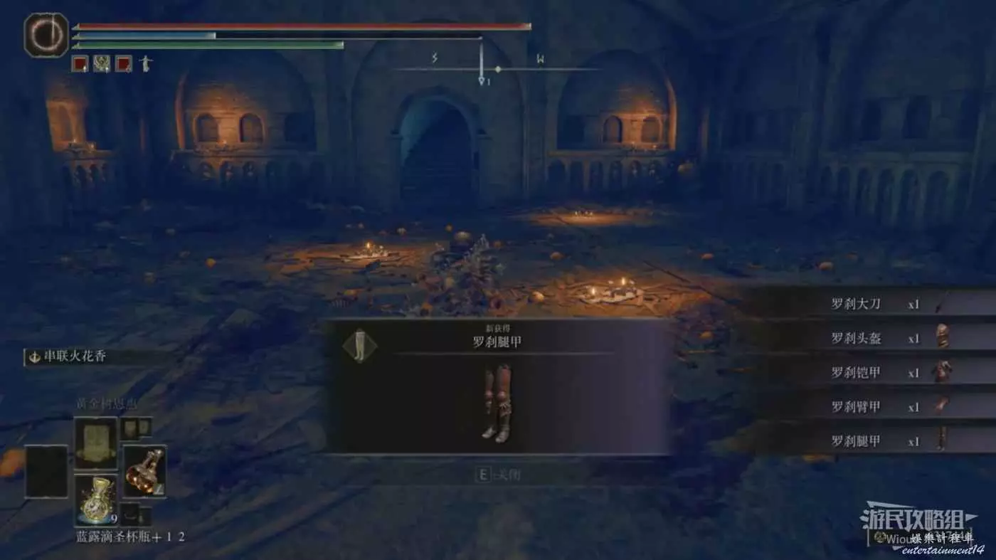 進入教堂建築內部點亮中間的賜福,然後往左邊走,拾取左牆屍體的光點獲得武器【癲火調香瓶】。