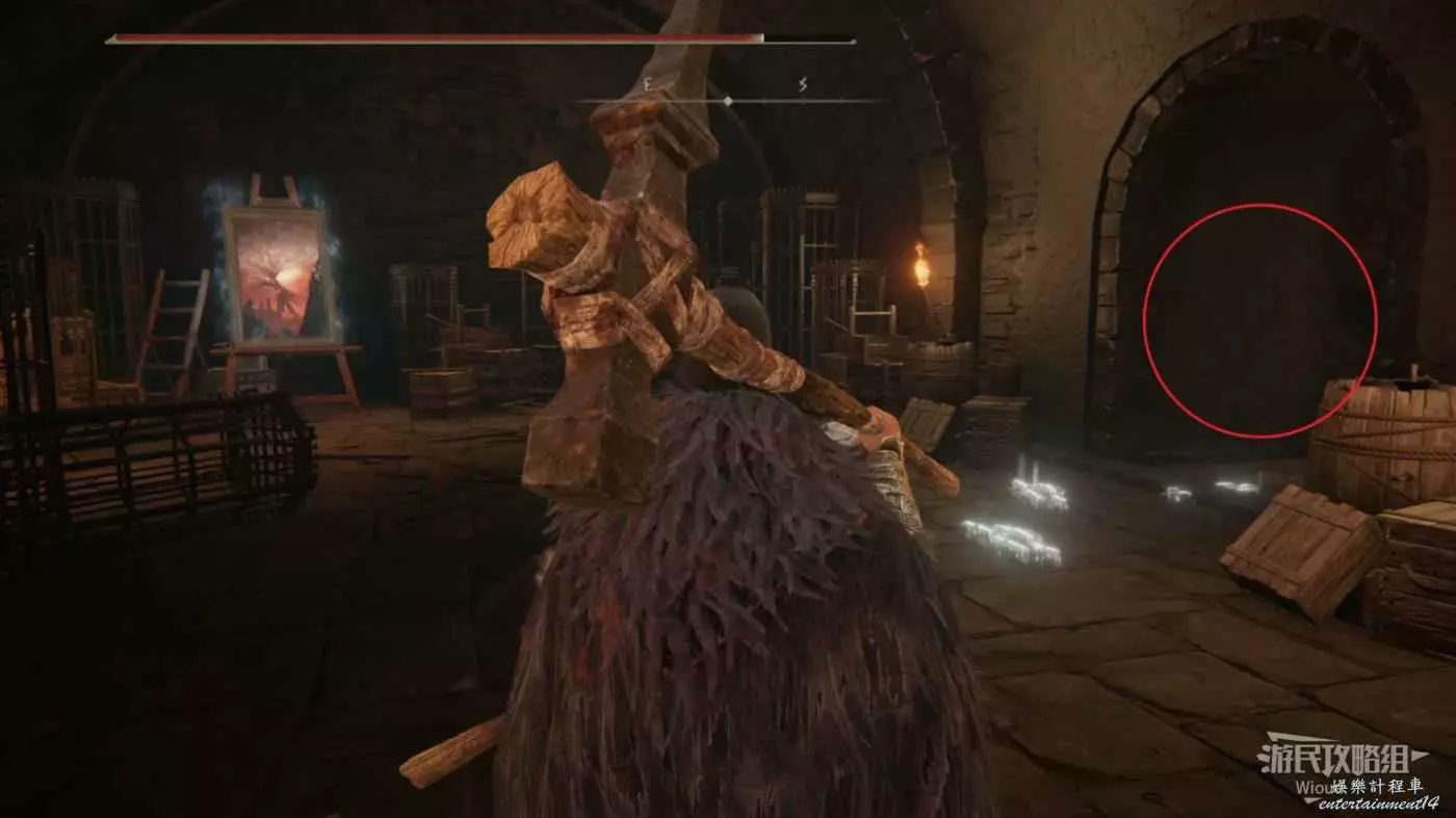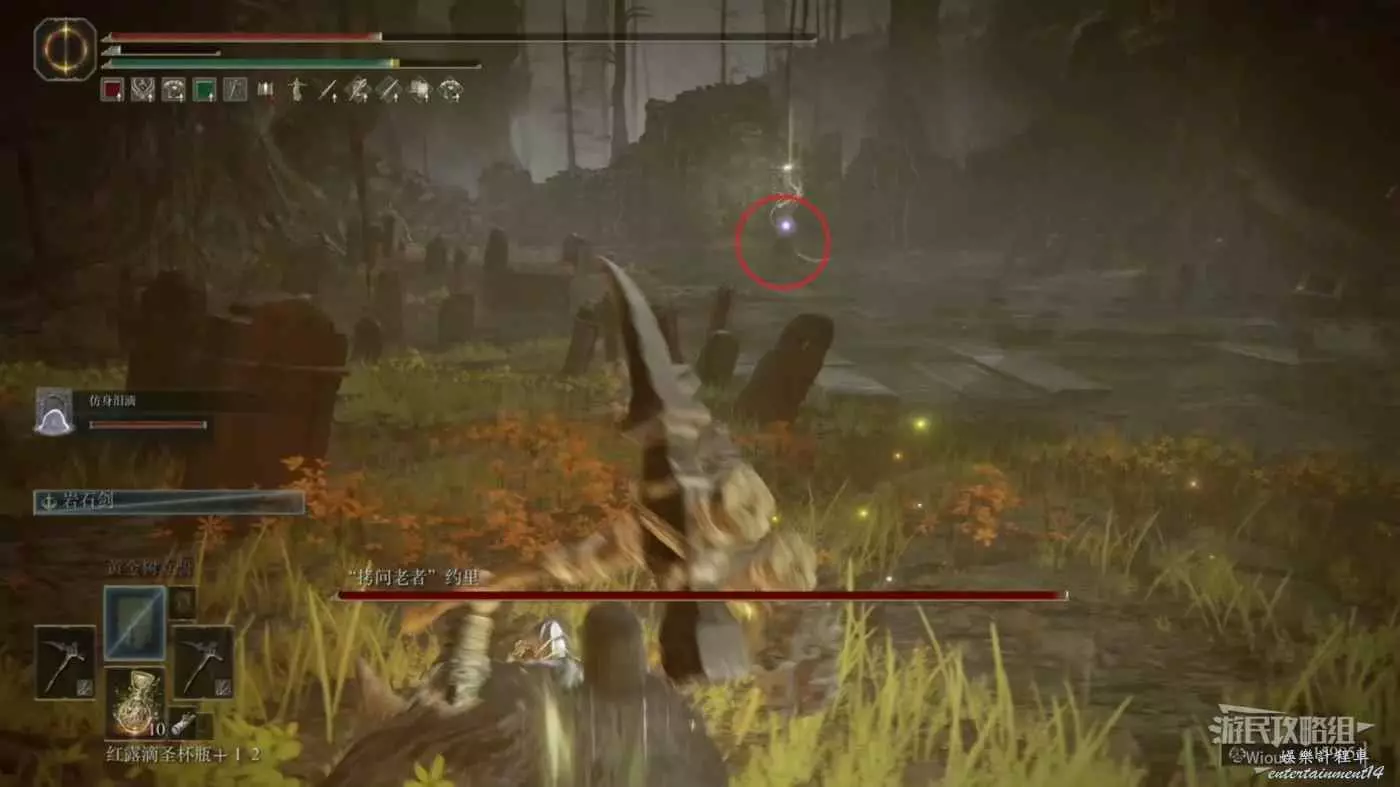 隨後從賜福出發,走左邊的大路,這裡有一個紅色名稱的怪物“癲狂之手”,我們無法直接對它造成傷害,因此需要再旁邊潛行繞過去。