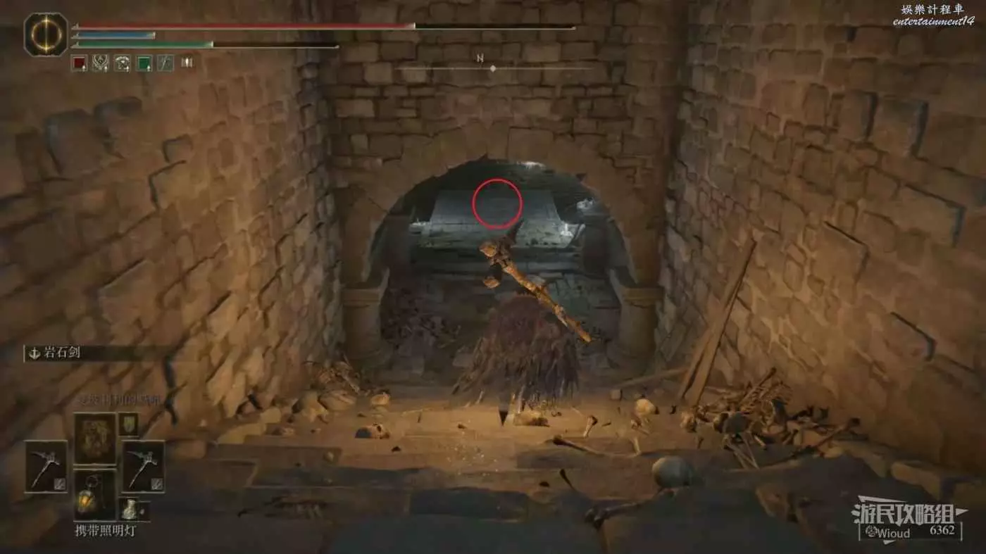 繼續沿著道走,前方有一個棺材,進入棺材就會傳送到幽影城右下的位置,往前走點亮賜福【城底積水處】,旁邊就是安堤廢墟。