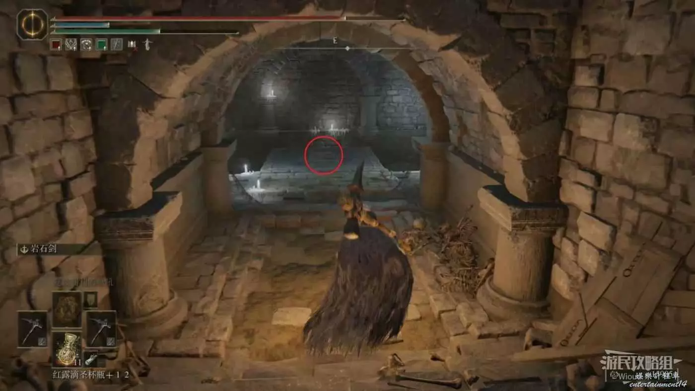 然後離開神廟按照下圖路線繼續往下走到達【驅暗地下墓地】的位置。