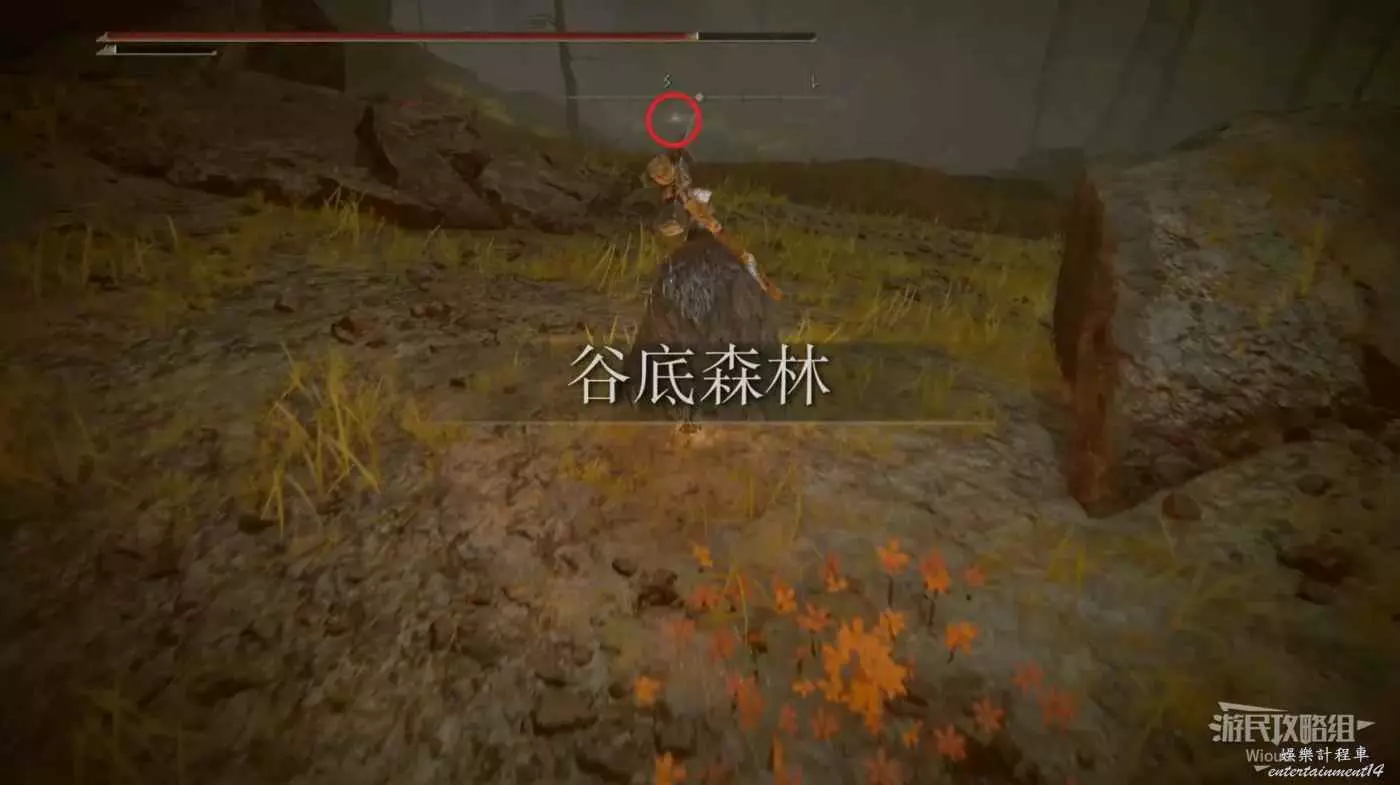 這裡無法召喚靈馬,所以我們需要步行走過大部分的路,首先往前直走一段距離,出現谷底森林的提示時就能看到第一個賜福了。