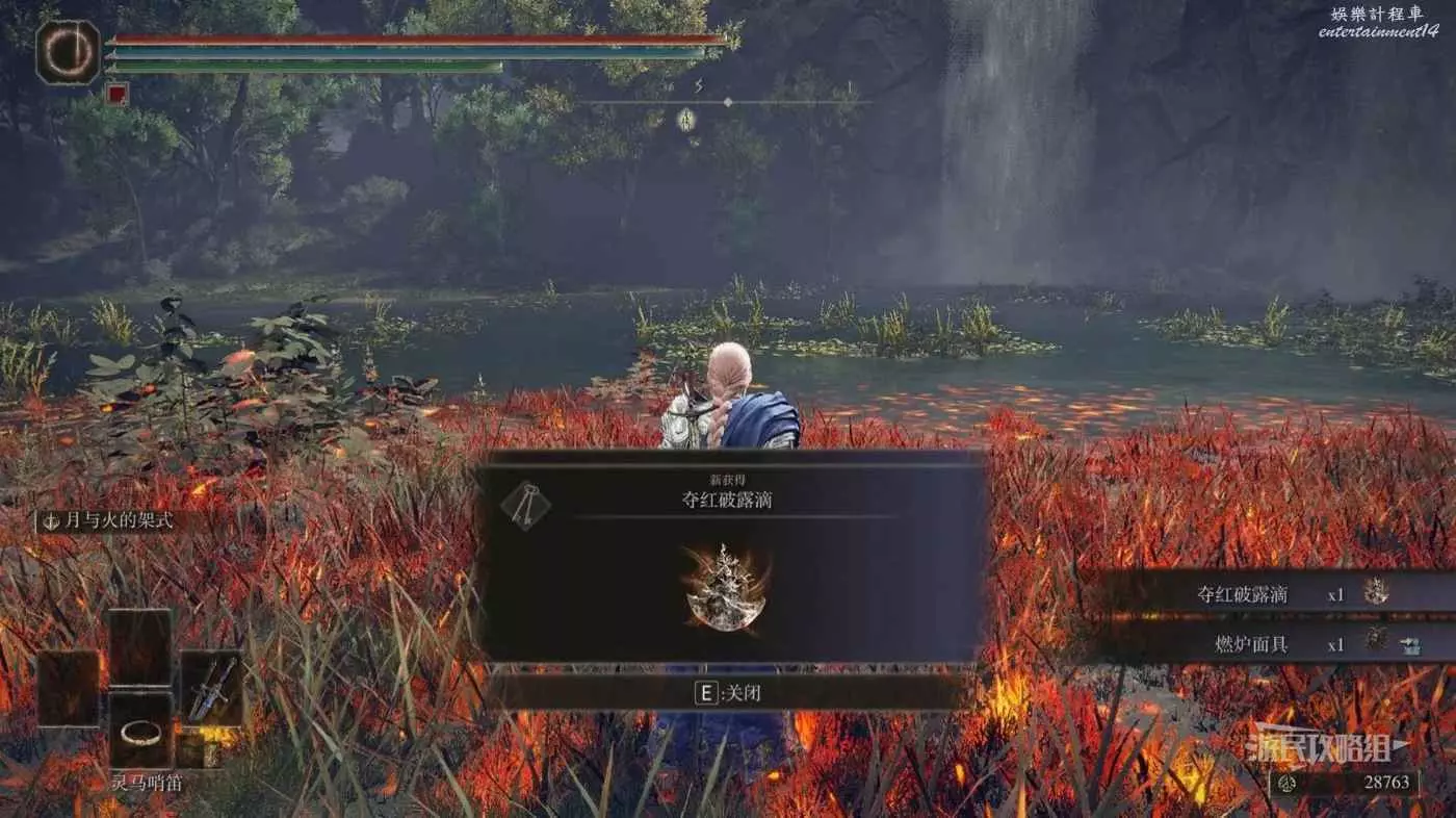 擊敗幽影城前的火焰巨人,獲得湧紅枯露滴。