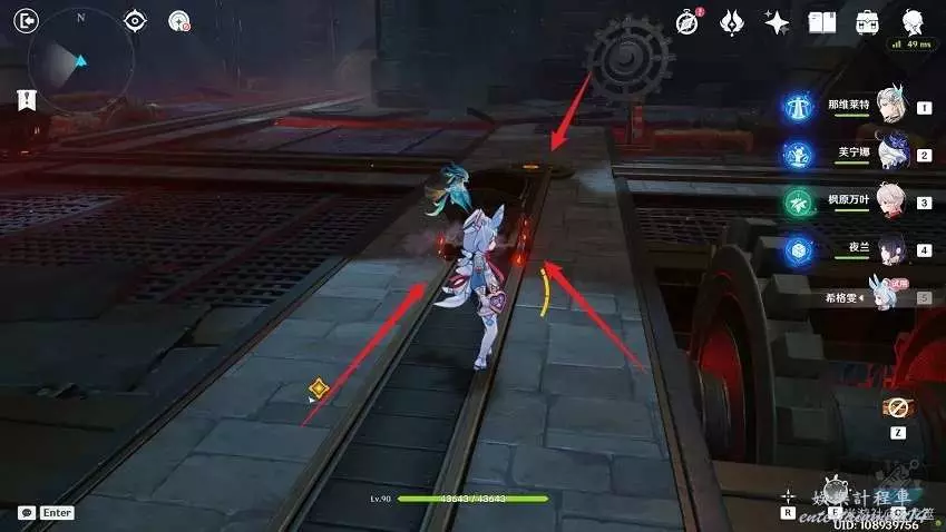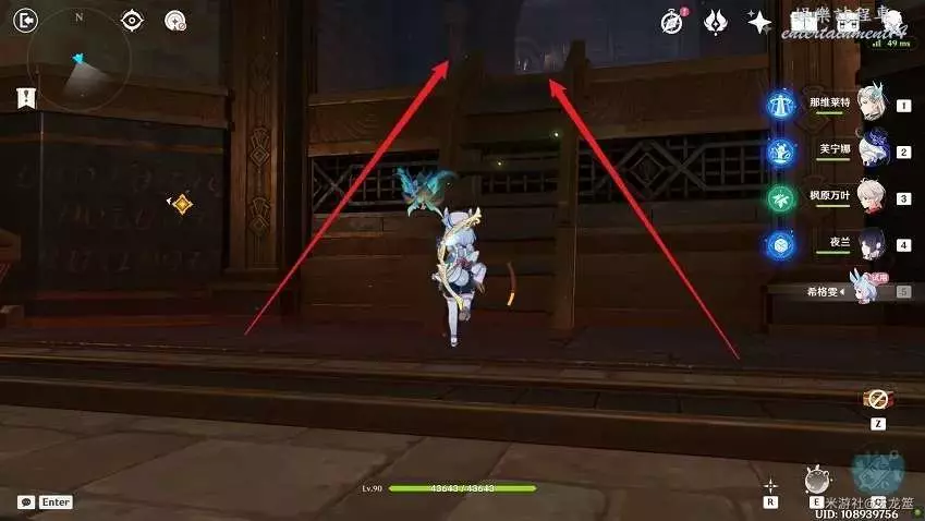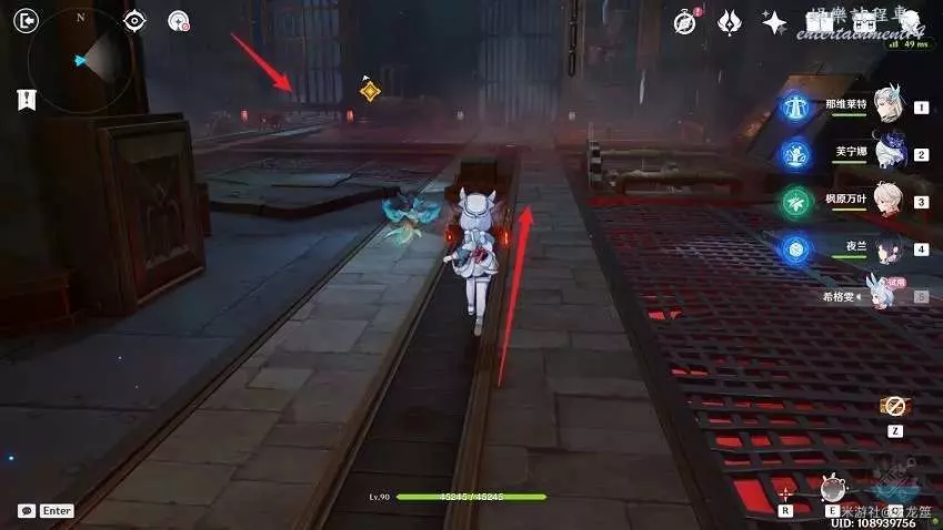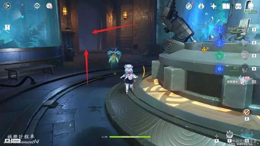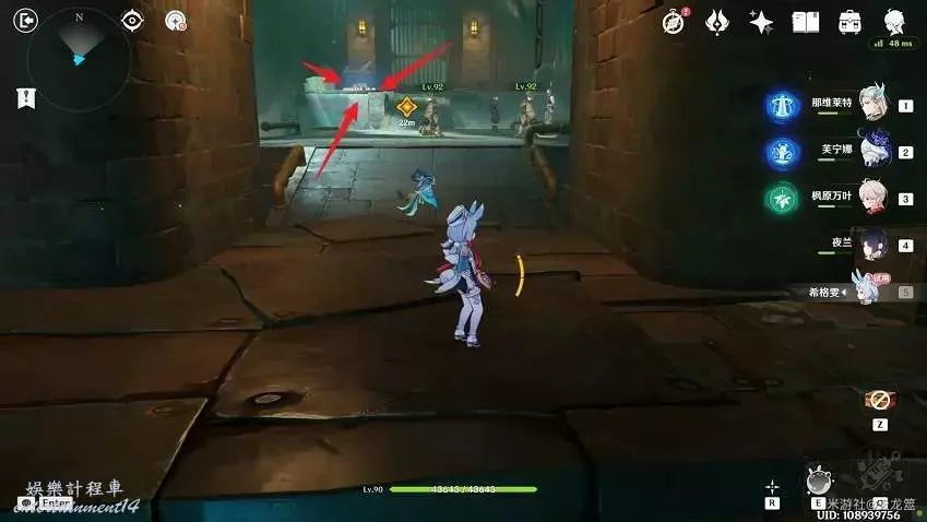然後我們走過大門爬上右側的梯子(左側的寶箱暫時拿不到,別急,不用往回走)