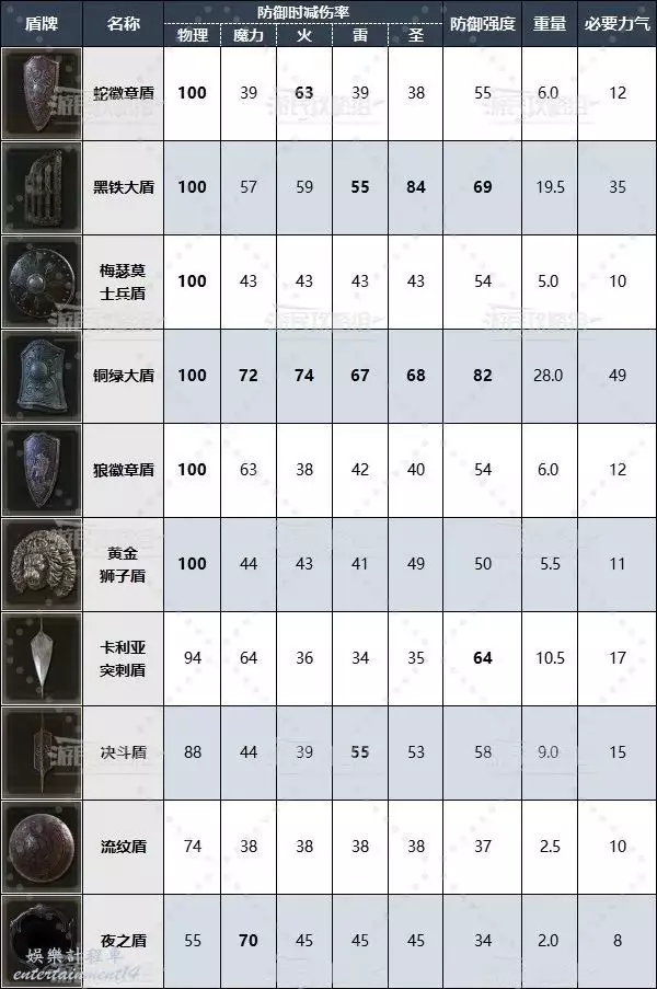 DLC全盾牌資料表