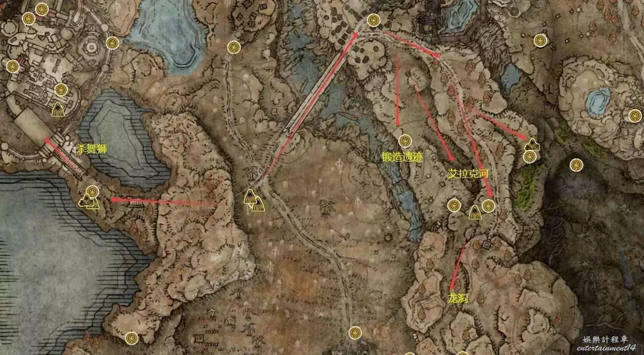 去龍洞路上遇到埃貢,龍洞出來分叉口往南邊是龍饗教堂和龍娘,東邊是尖峰山去屠龍。殺死狂龍後可以拿到埃貢和龍娘的遺物。區別在於殺龍前,是否在晚上給龍娘喂休裡耶的毒藥,遺物不同而已。