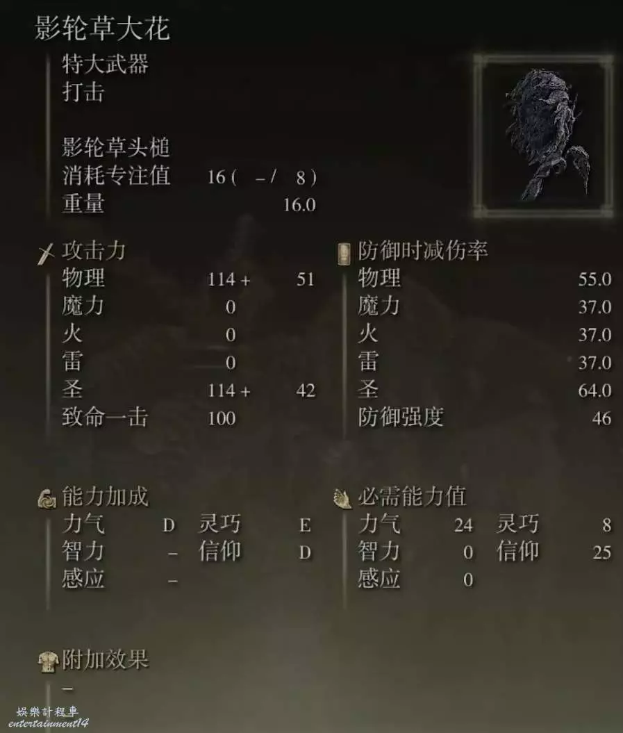 艾爾登法環 (Elden Ring) 黃金樹幽影DLC 強力特大武器推薦 28 6 月 2024-06-28 廣告 作者:心星章魚鯤鵬龍 來源:艾爾登法環吧 武器名字是影輪草大花 武器戰技名字是影輪草頭槌 影輪草頭槌:以前以為是個玩具,但後來發現並不是玩具,而是一個很強的武器,尤其是它的戰技只要使用過一次之後再使用一次可以兩連重擊傷害爆炸。中間幾乎沒有間斷,只要你身穿重甲韌性高挺過第一階段,接下來的2~3次重下砸將會提供極高的銷刃。很多持盾的重甲武士也抵擋不住,用這個打很多大體型的怪物也會削人很快的可以倒地處決。