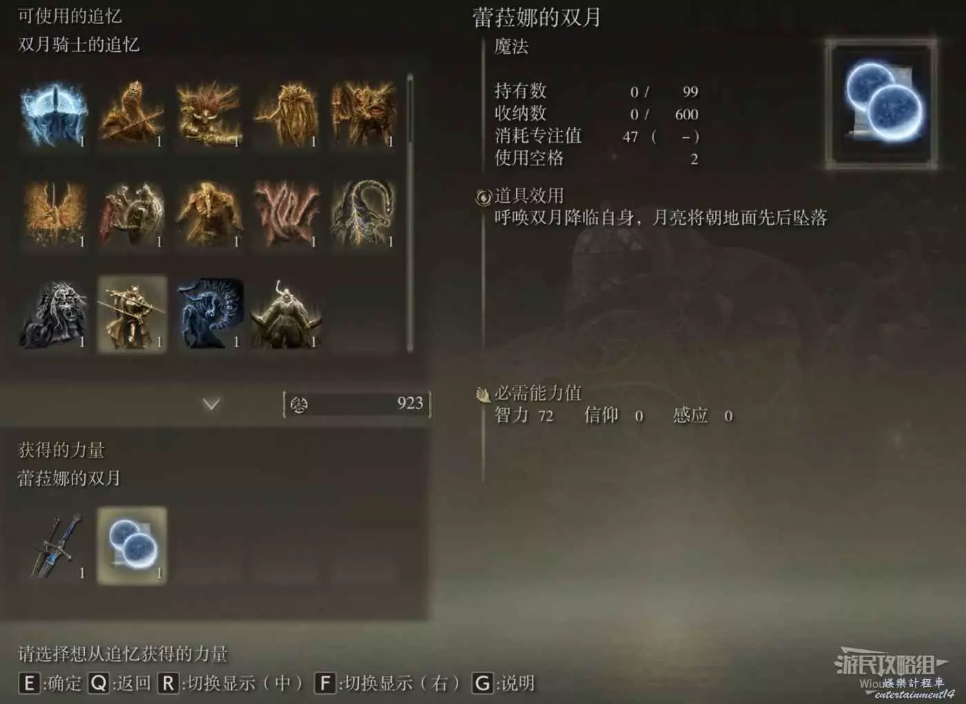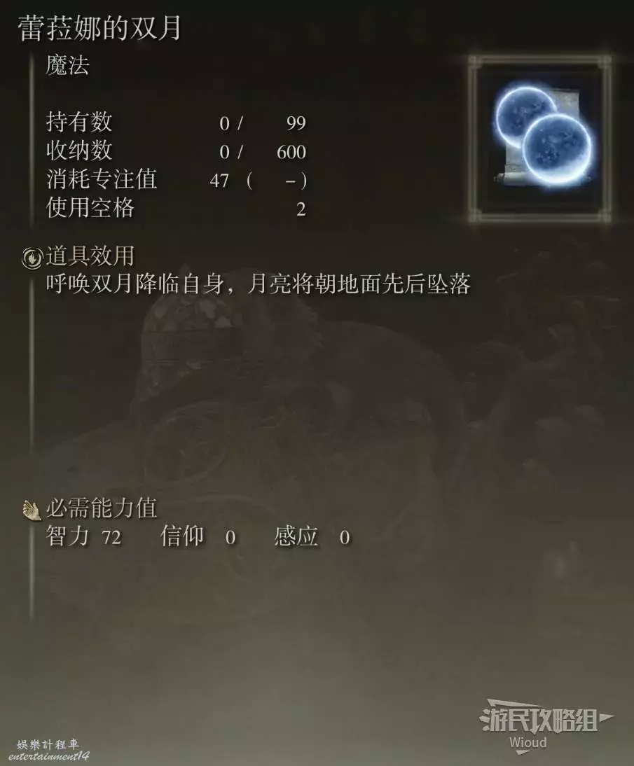 此魔法需要擊敗恩希斯城的最終BOSS雙月騎士蕾菈娜並獲得雙月騎士的追憶,在大賜福兌換獲得。