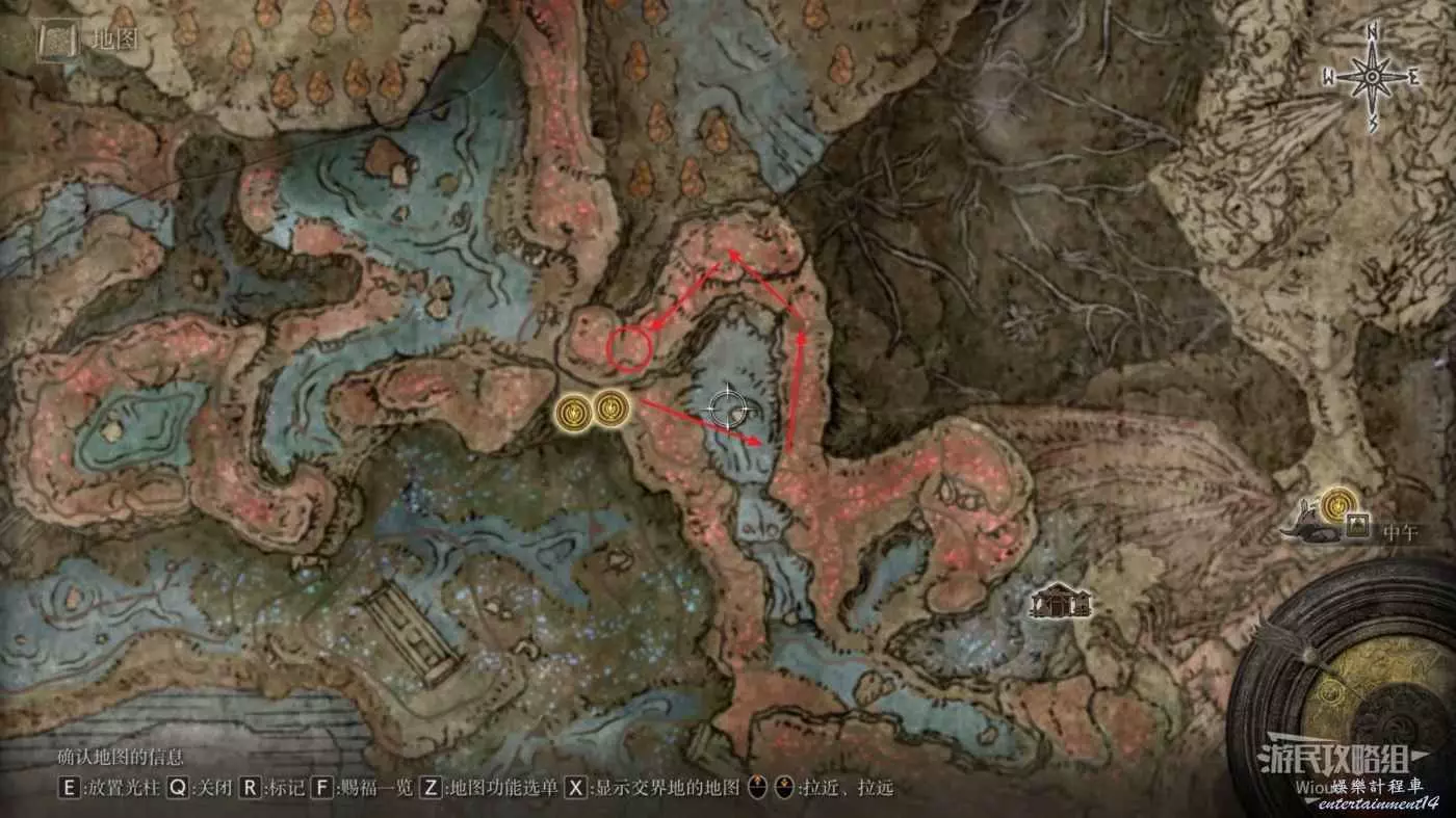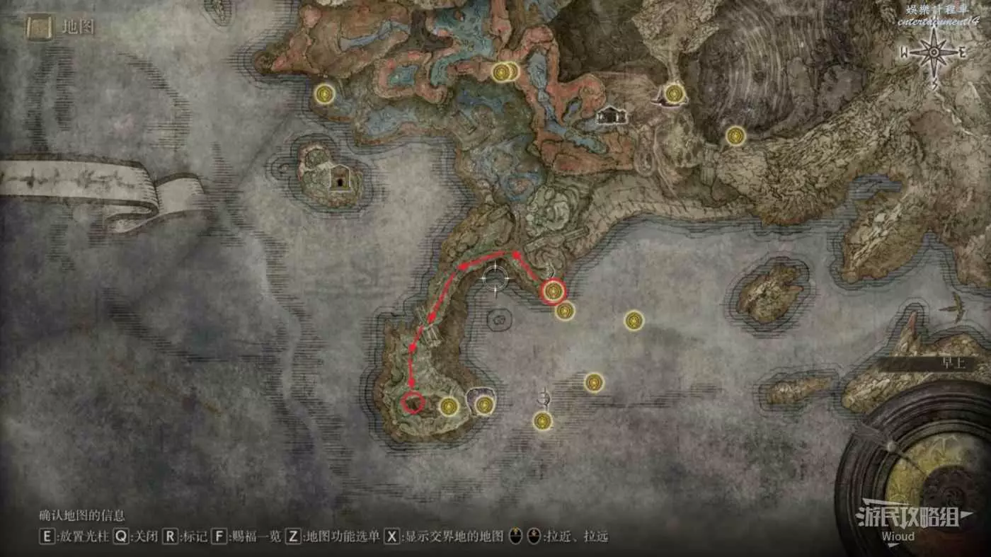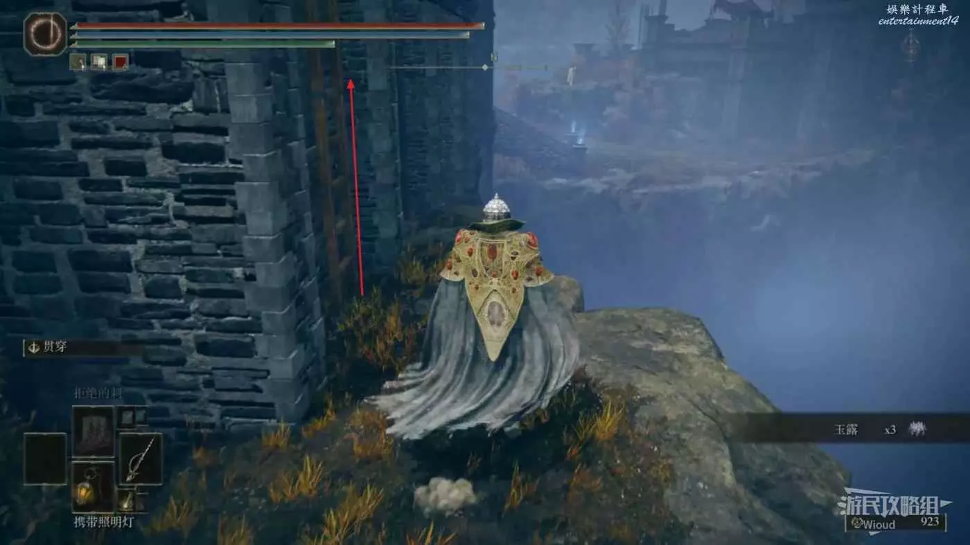 然後從第二個賜福繼續往右邊走,按照下圖路線走到盡頭處的懸崖。