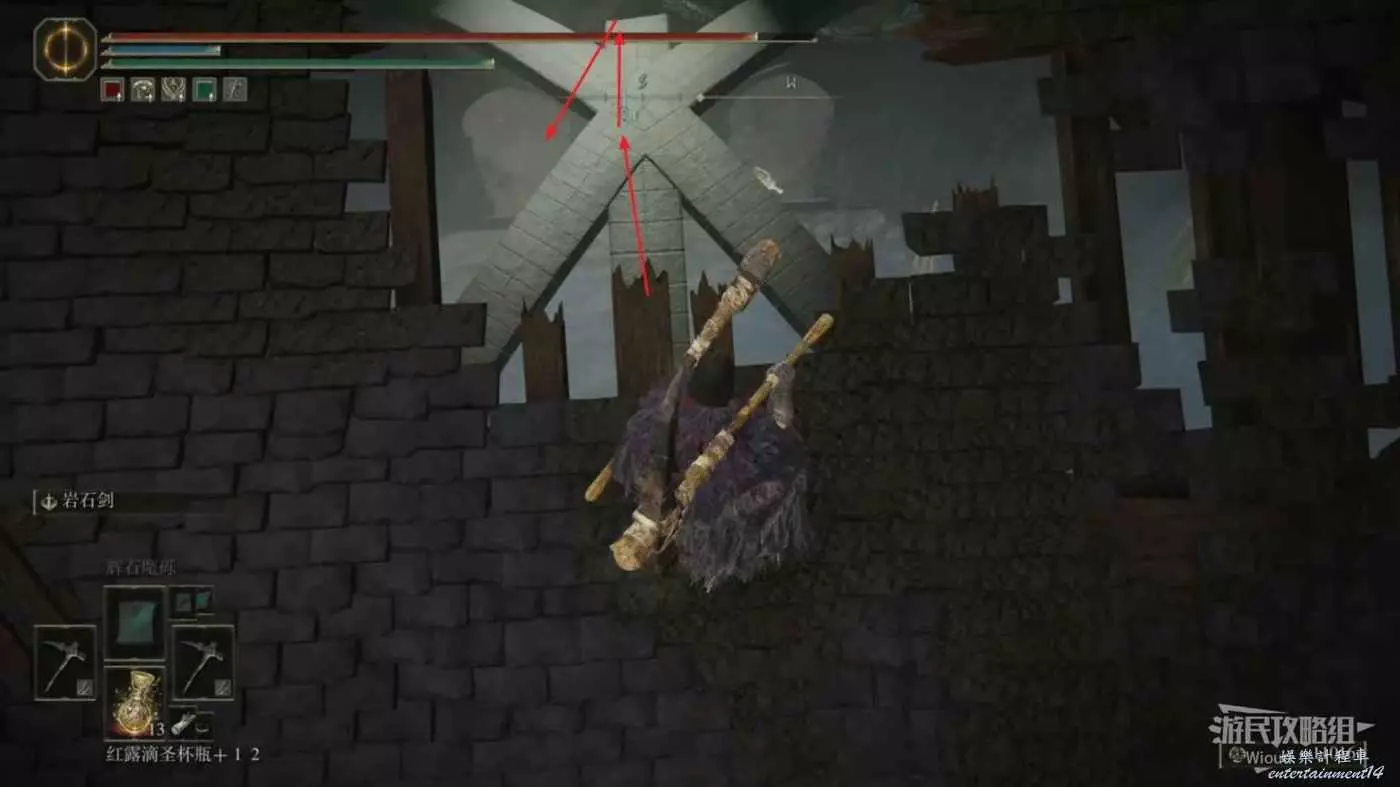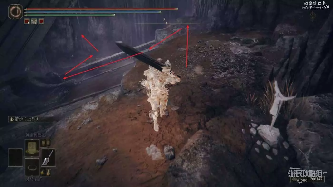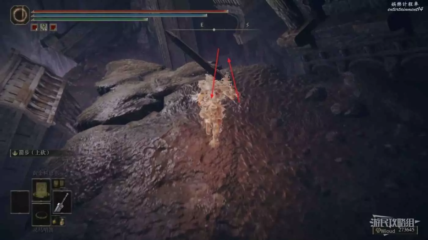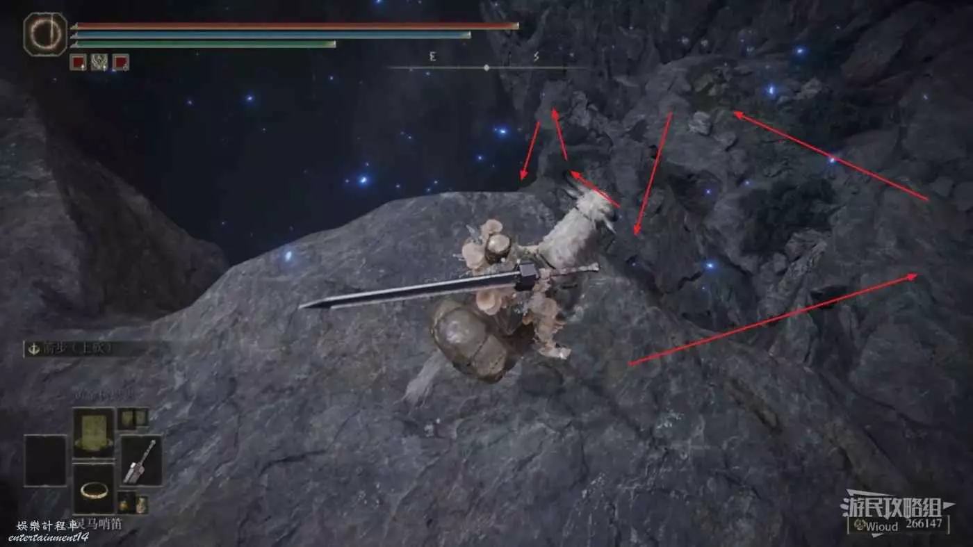 擊敗這個敵人之後連續往下跳,可以看到下面的石頭有個入口,直接跳到下面。