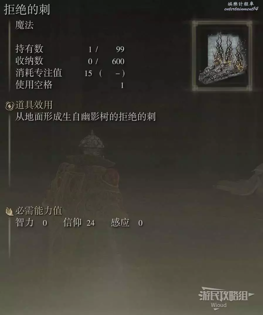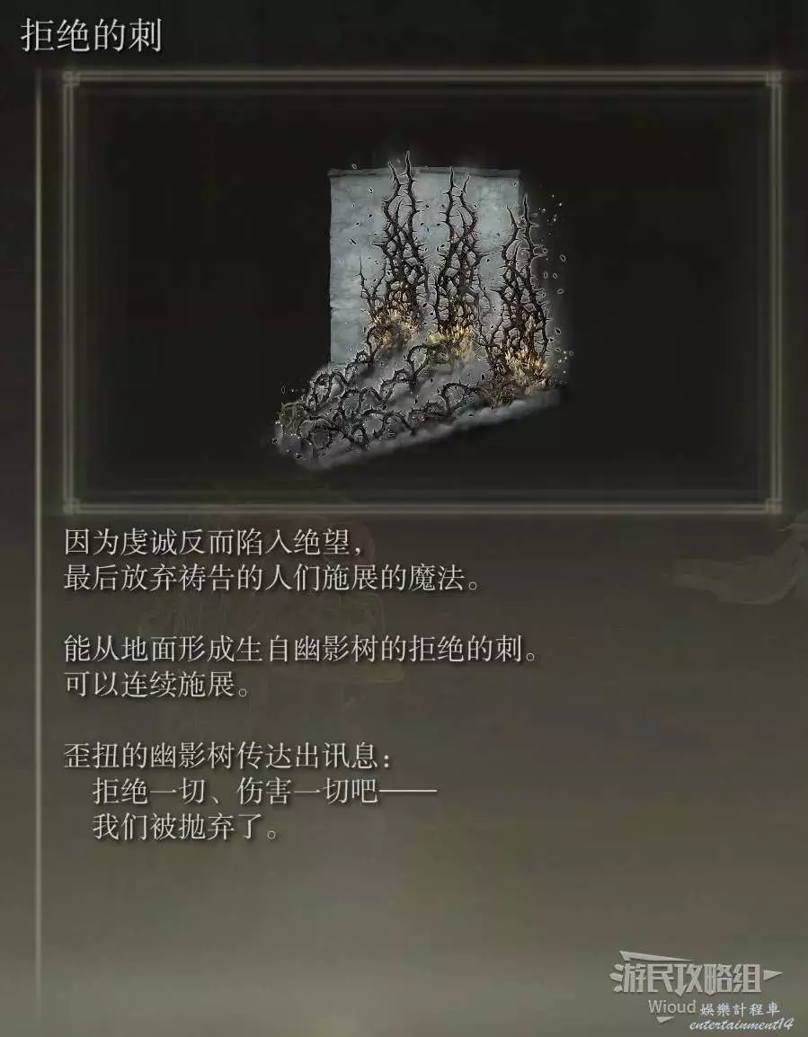 拾取此處的屍體即可獲得魔法【拒絕的刺】。