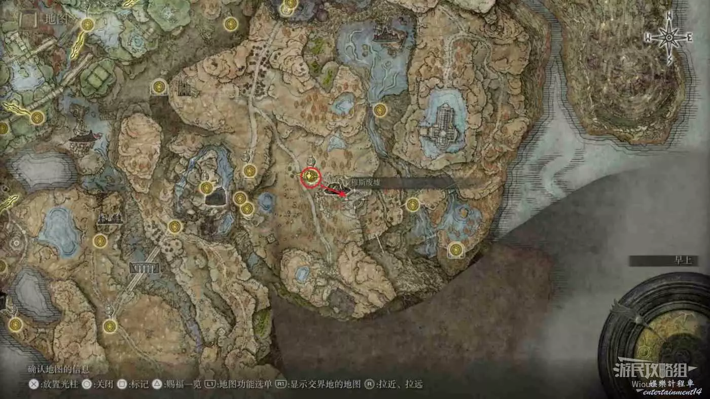 我們首先傳送到賜福【穆斯廢墟】,往右下走一段距離就能找到位於穆斯廢墟的地洞。