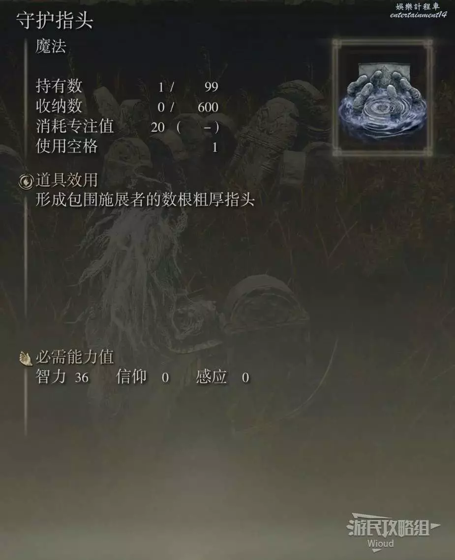 拾取墓地中間的光點即可獲得魔法【守護指頭】。