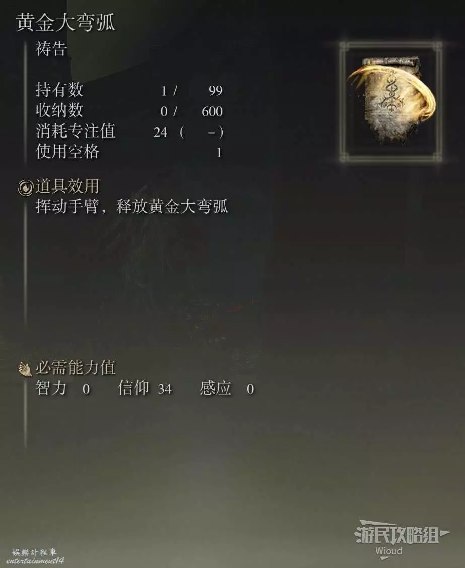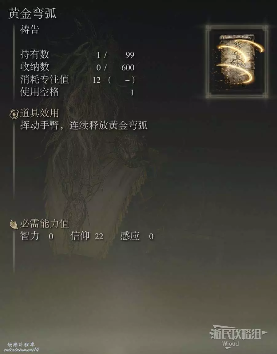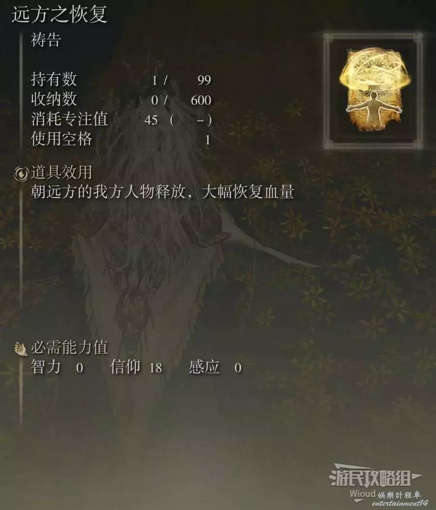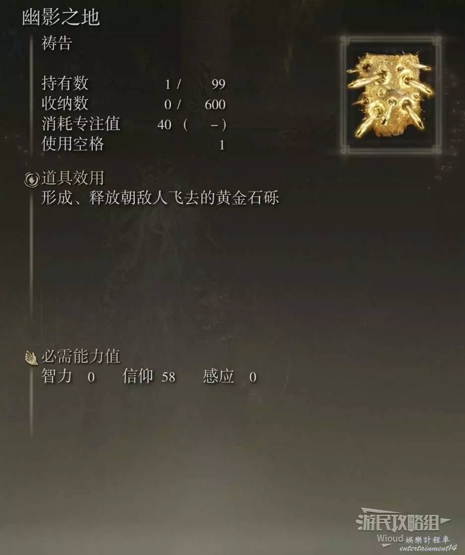此禱告是從地圖右上角的巫者村處的小黃金樹位置直接拾取獲得。